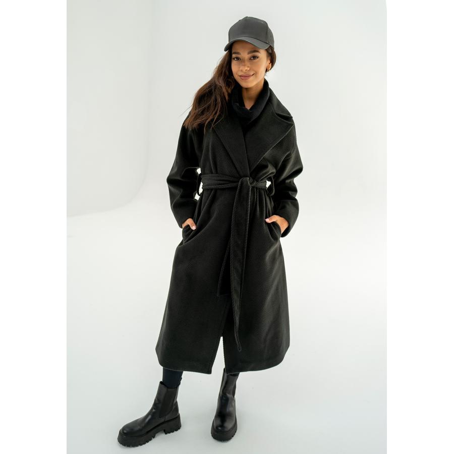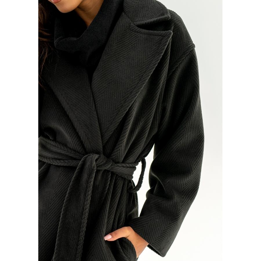 Černý elegantní kabát MOSQUITO s páskem, vyrobený z vysoce kvalitního materiálu a navržený podle nejnovějších módních trendů.