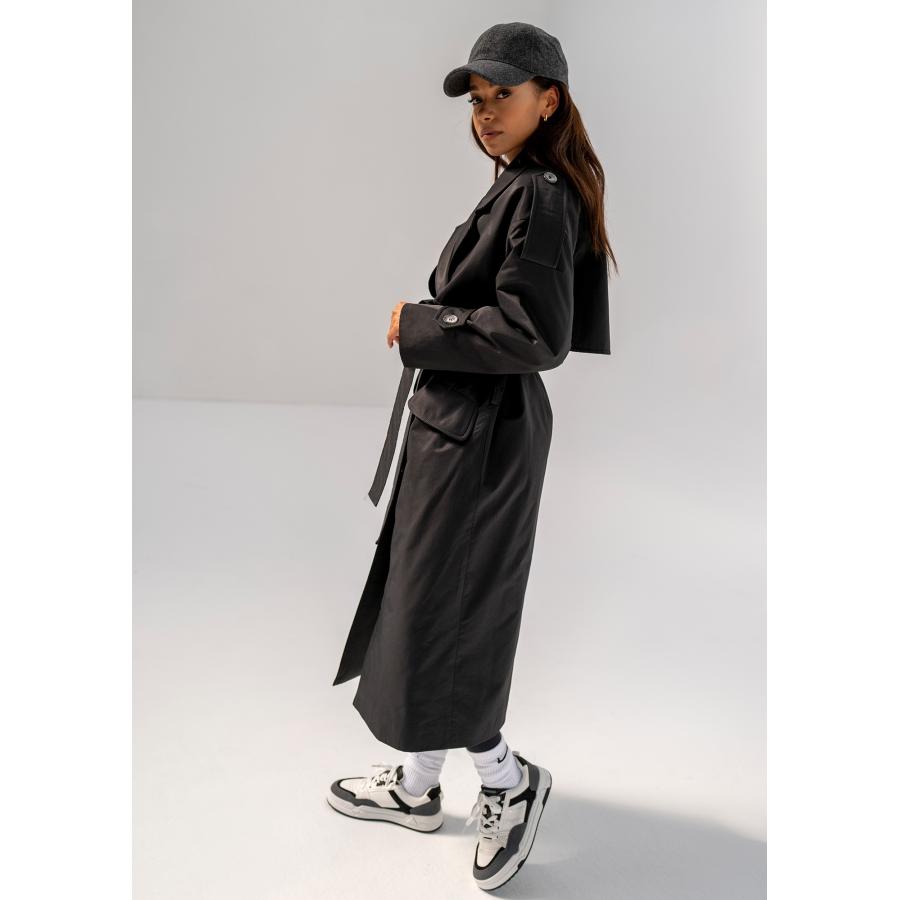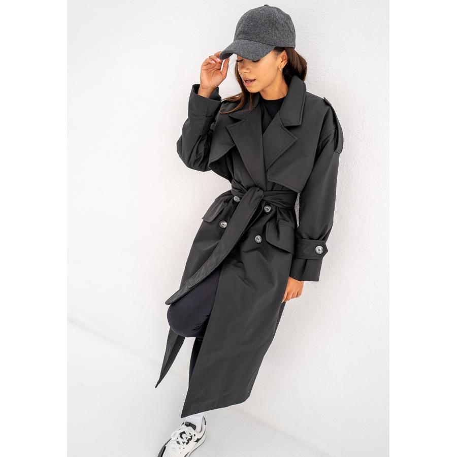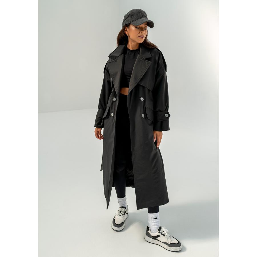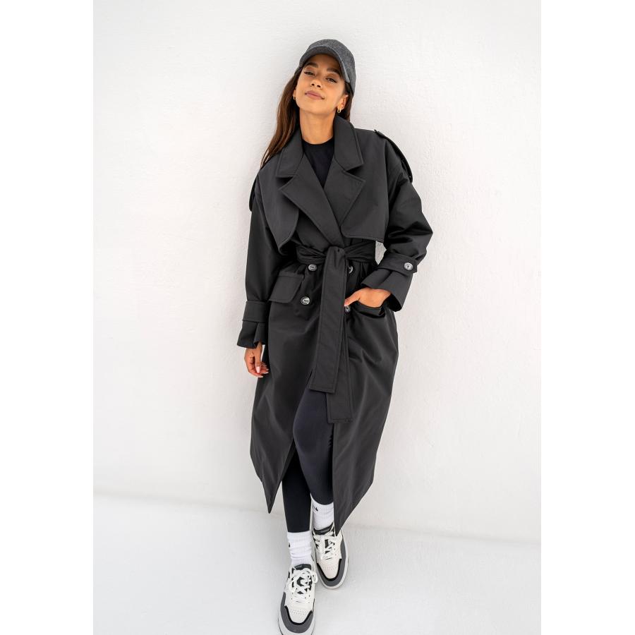 Dvouřadý trenčkot MOSQUITO v černé barvě, vyrobený z vysoce kvalitního materiálu a navržený podle nejnovějších módních trendů.