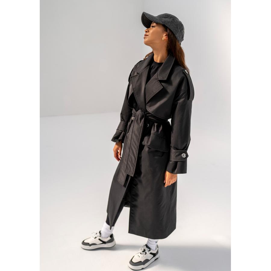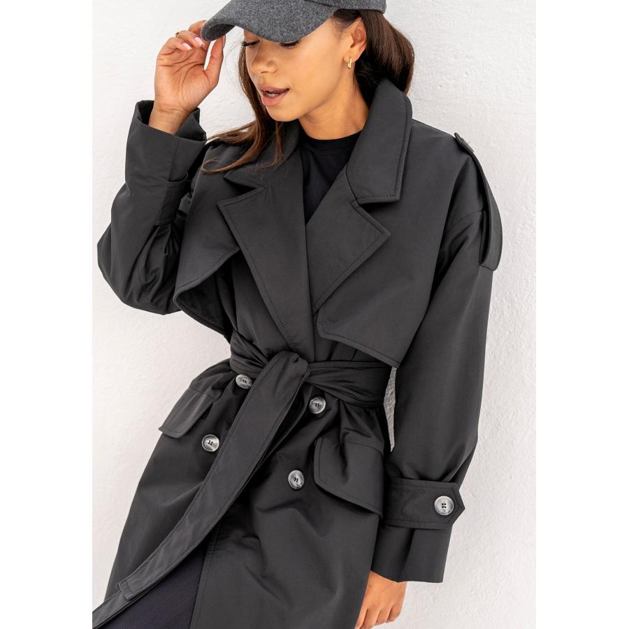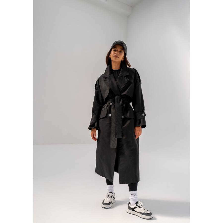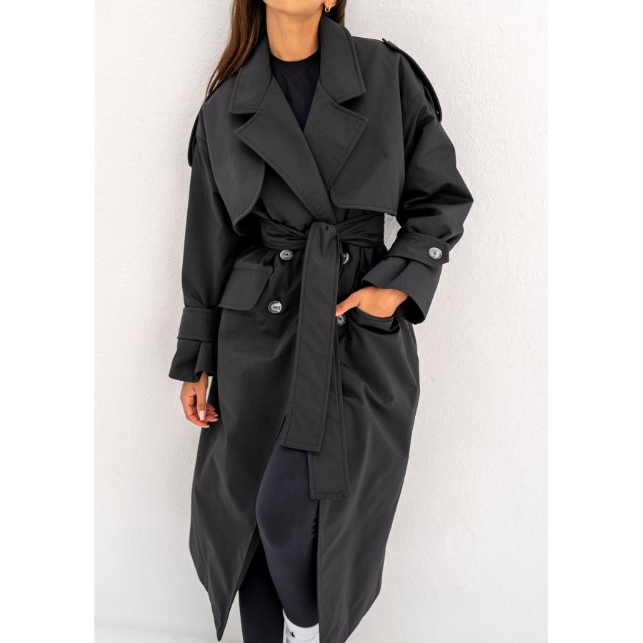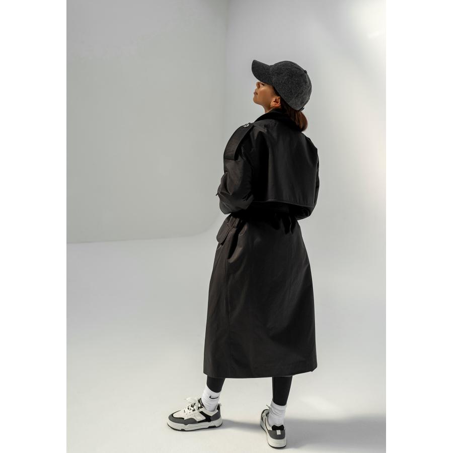 Dvouřadý trenčkot MOSQUITO v černé barvě, vyrobený z vysoce kvalitního materiálu a navržený podle nejnovějších módních trendů.