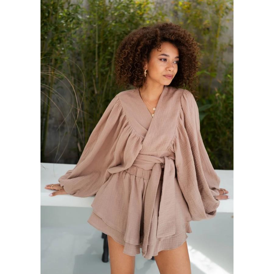 Střih: s obálkovým vázáním, s dlouhými volnými rukávy.