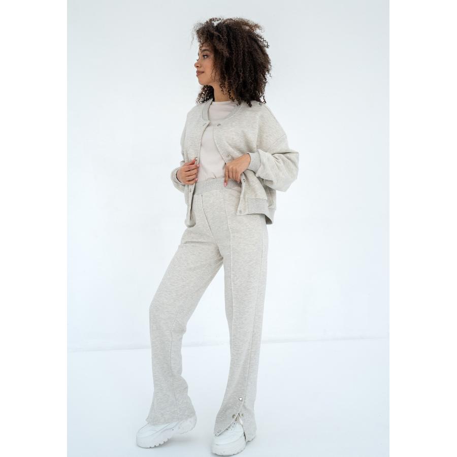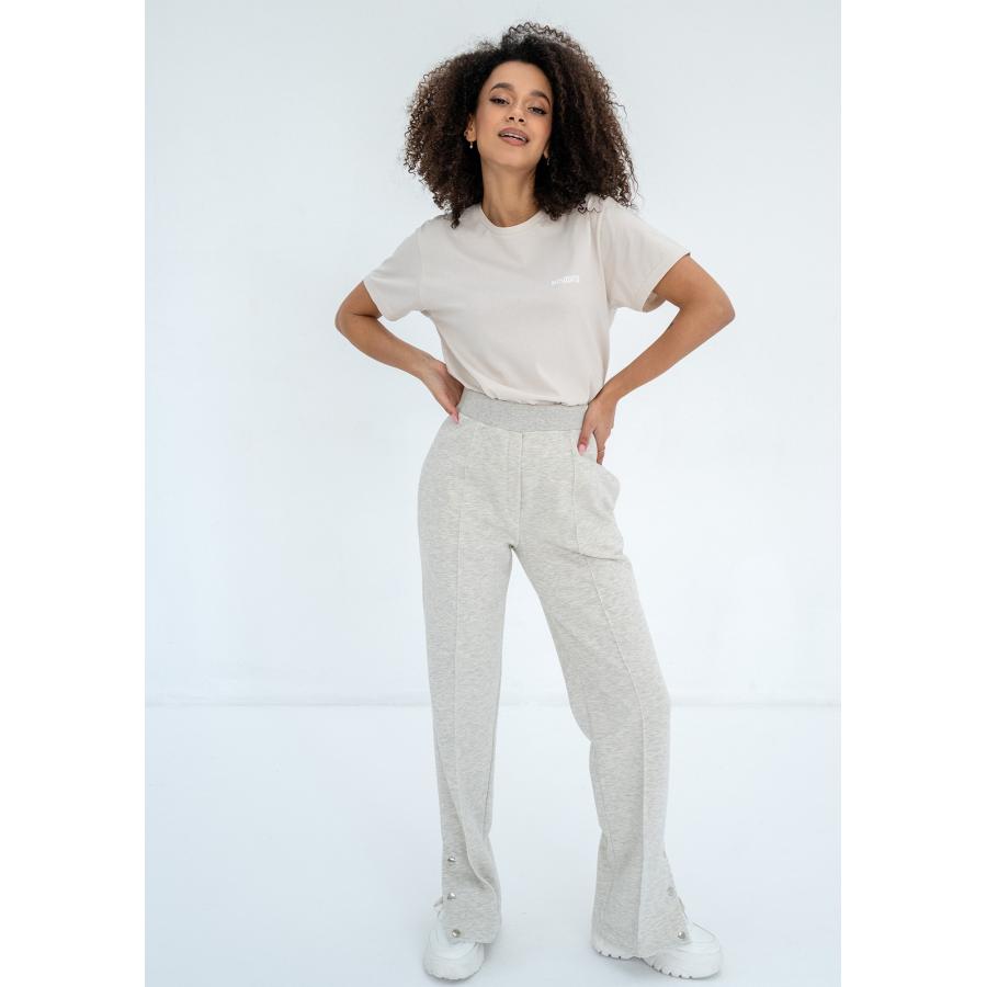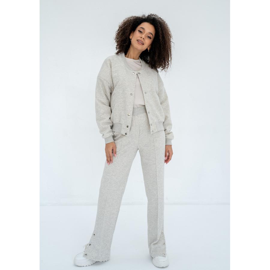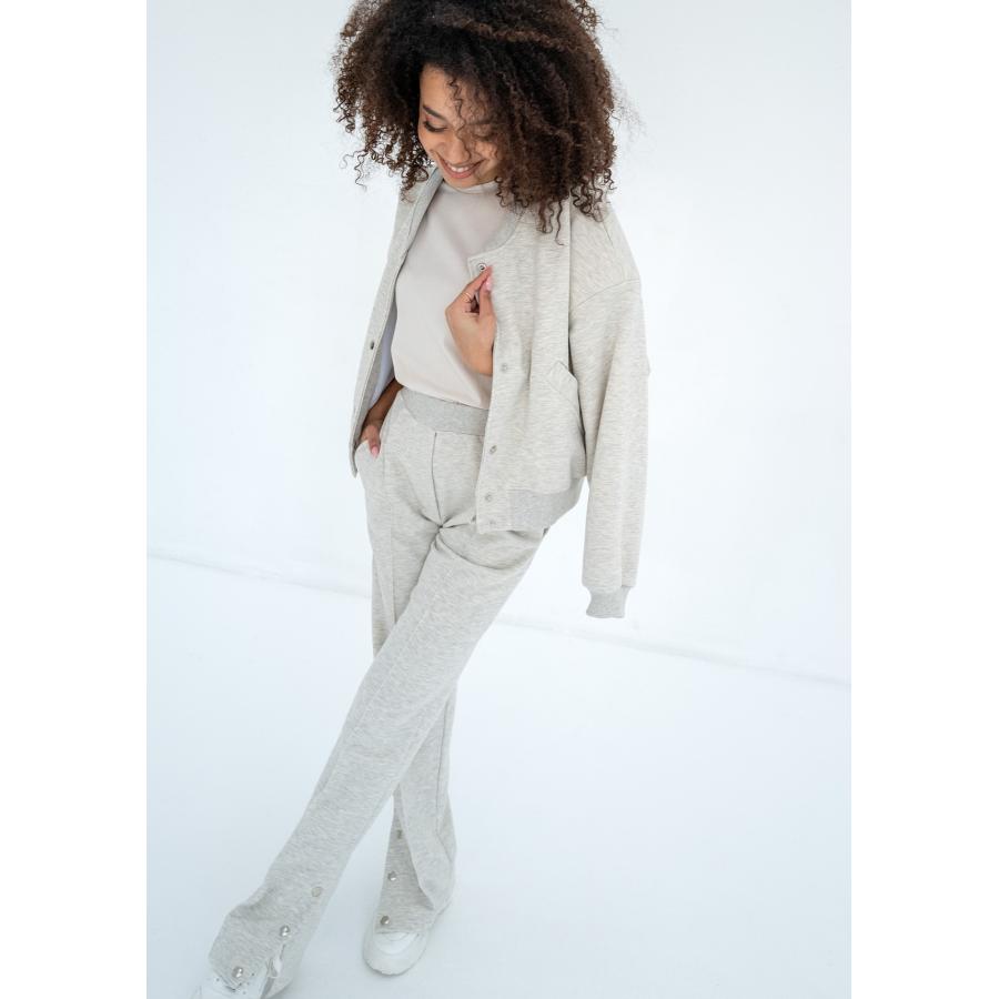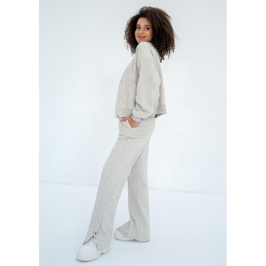 Dámské tepláky v módním stylu. Design je zdoben kovovými patentkami, které umožňují rozšíření nožiček.