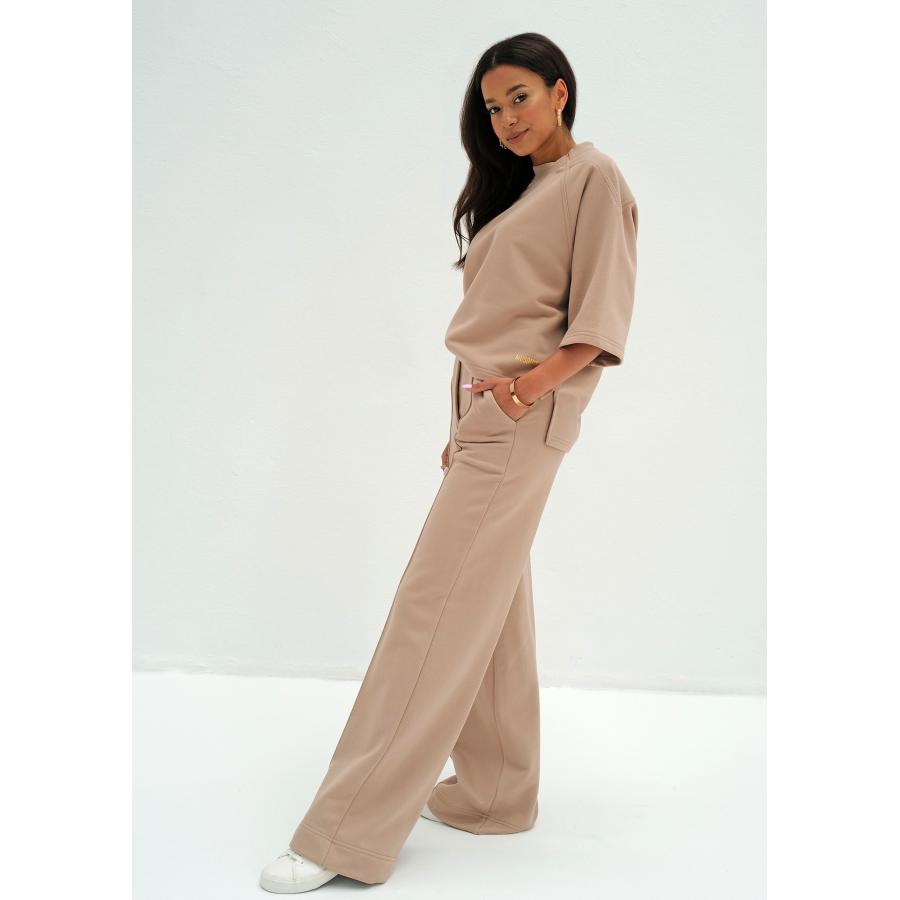 Bavlněné dámské kalhoty se širokými kalhotami a záhybem z jemného úpletu. Pohodlný design s elastickým pasem a dvěma kapsami.