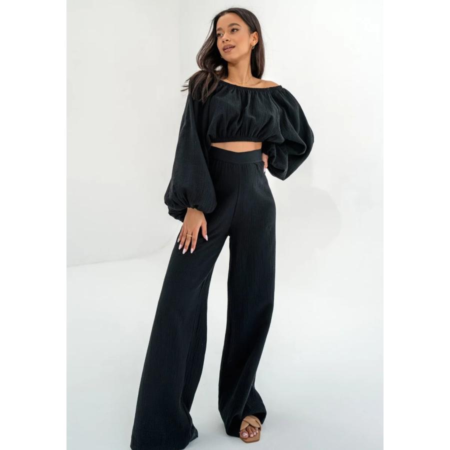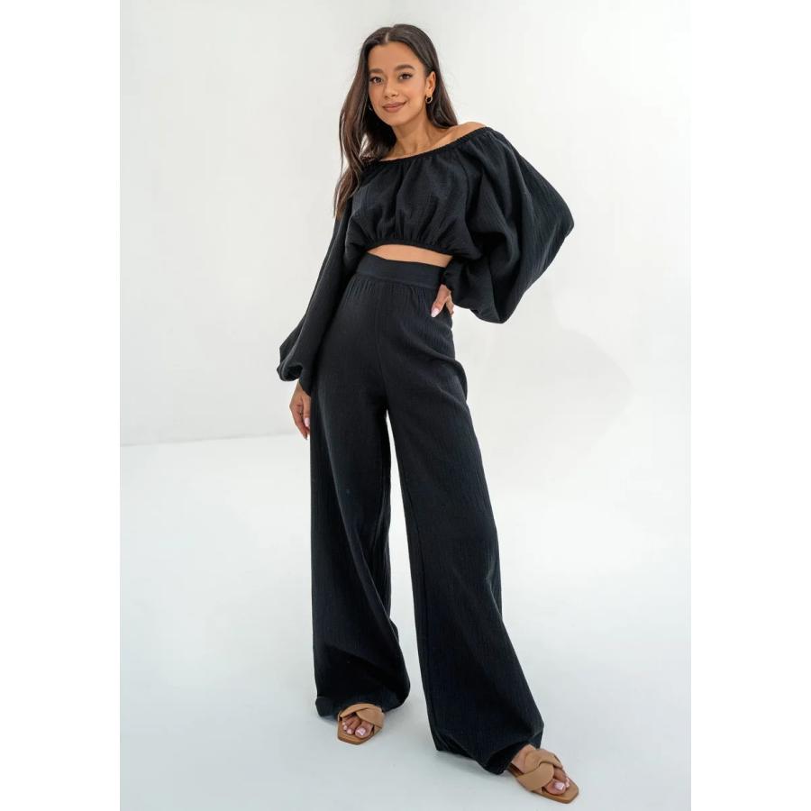 Široké černé mušelínové kalhoty MOSQUITO, vyrobeno z vysoce kvalitního materiálu a navrženo podle nejnovějších módních trendů.