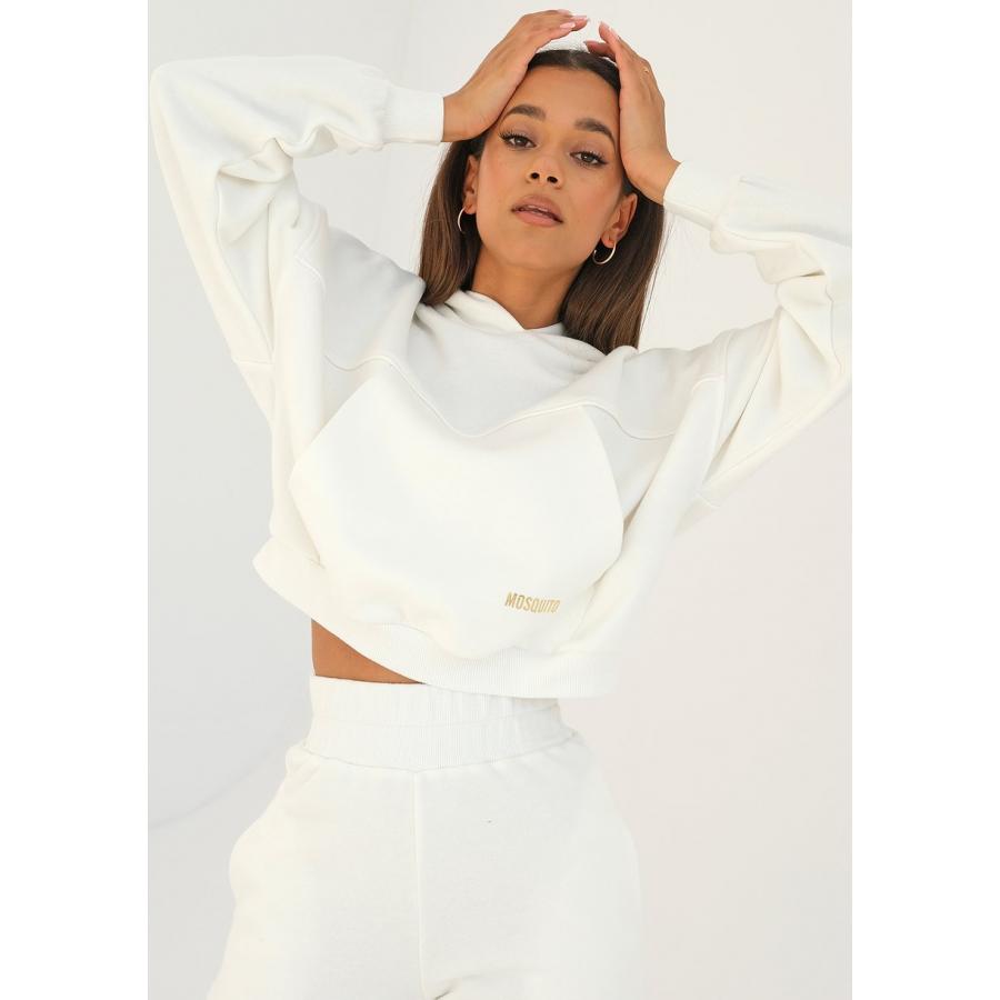 Bílá mikina MOSQUITO s klokaní kapsou, vyrobena z vysoce kvalitního materiálu a navržena podle nejnovějších módních trendů.