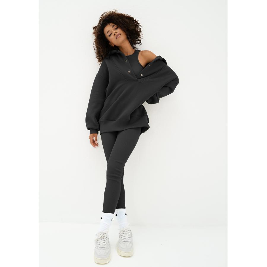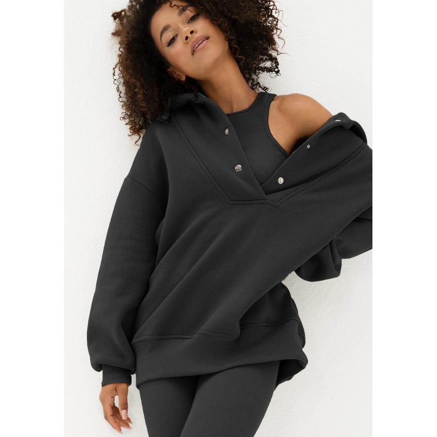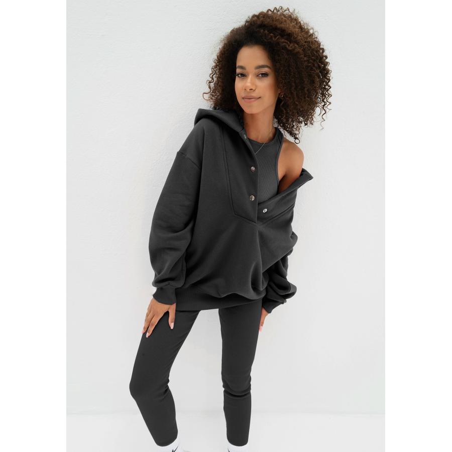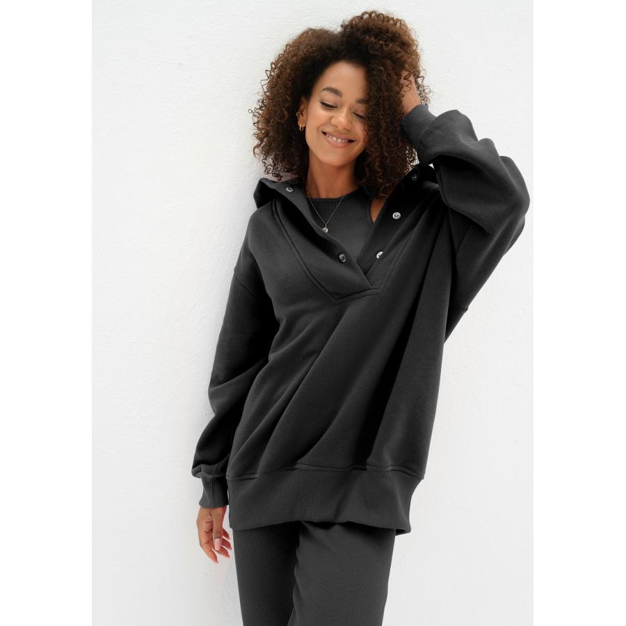 Teplá dámská mikina s kapucí ze spodní části z příjemně měkkého a nadýchaného bavlněného úpletu. Model s pohodlnými lemy, zapínání na kovové cvočky ve výstřihu.