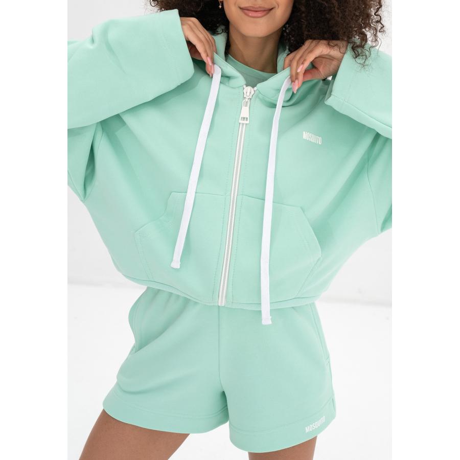 Mentolová mikina na zip MOSQUITO s kapucí, vyrobena z vysoce kvalitního materiálu a navržena podle nejnovějších módních trendů.