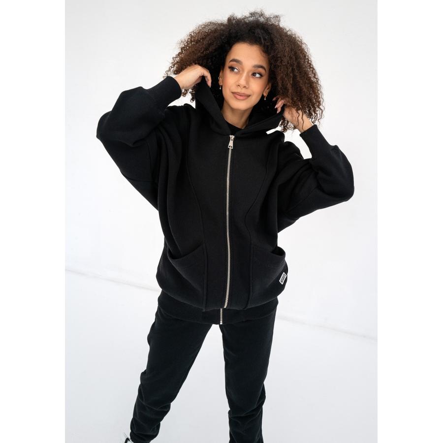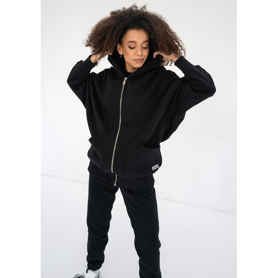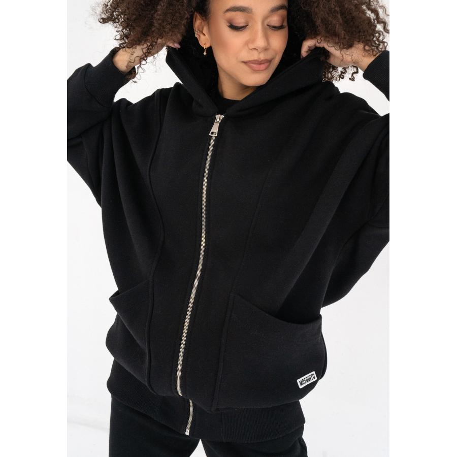Dlouhá černá mikina MOSQUITO s kapsami, vyrobena z vysoce kvalitního materiálu a navržena podle nejnovějších módních trendů.