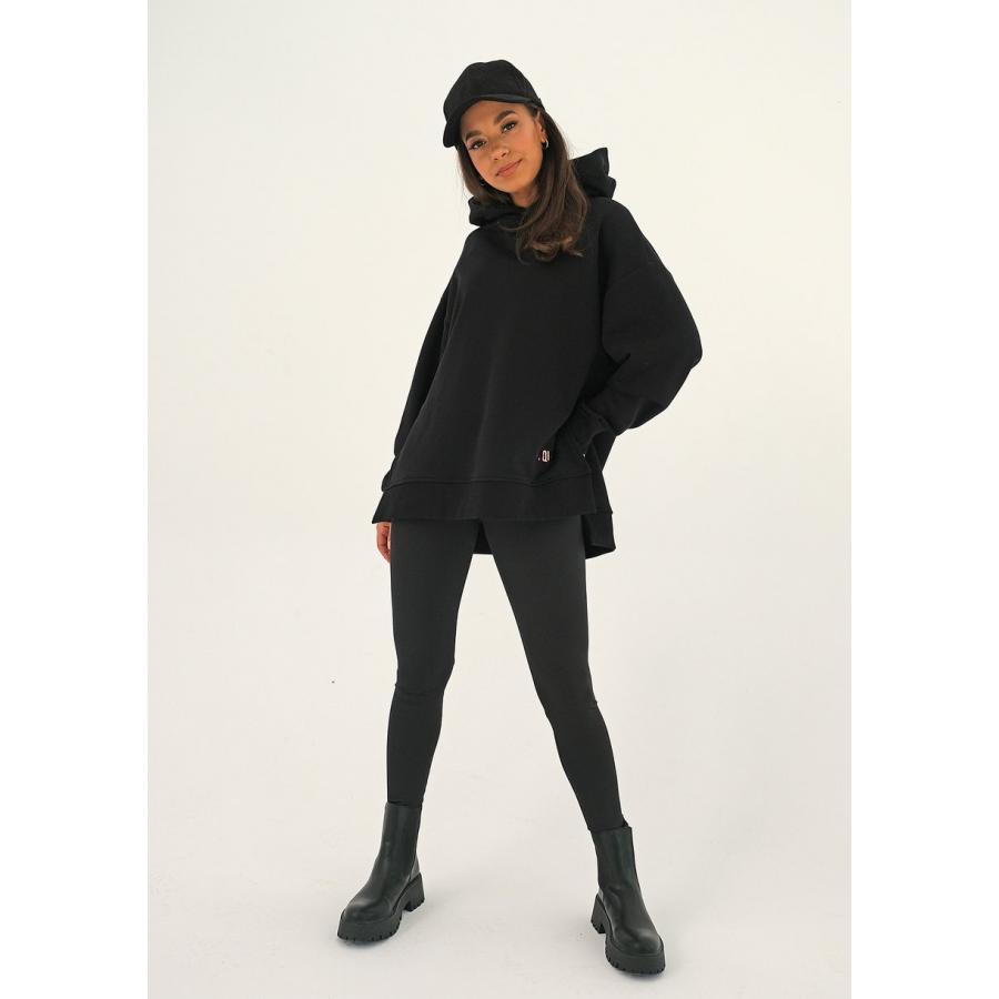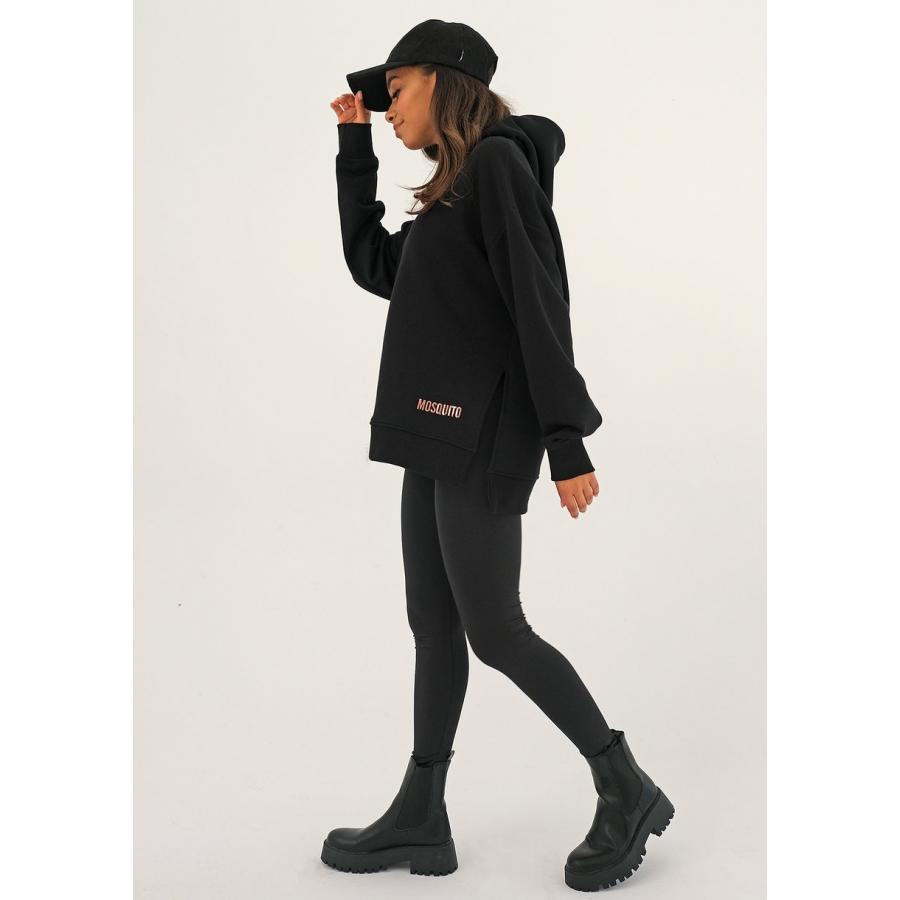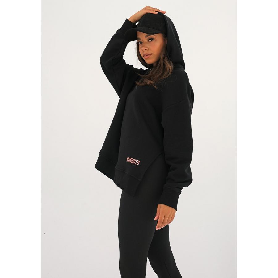 Asymetrická černá mikina MOSQUITO s kapucí, vyrobena z vysoce kvalitního materiálu a navržena podle nejnovějších módních trendů.