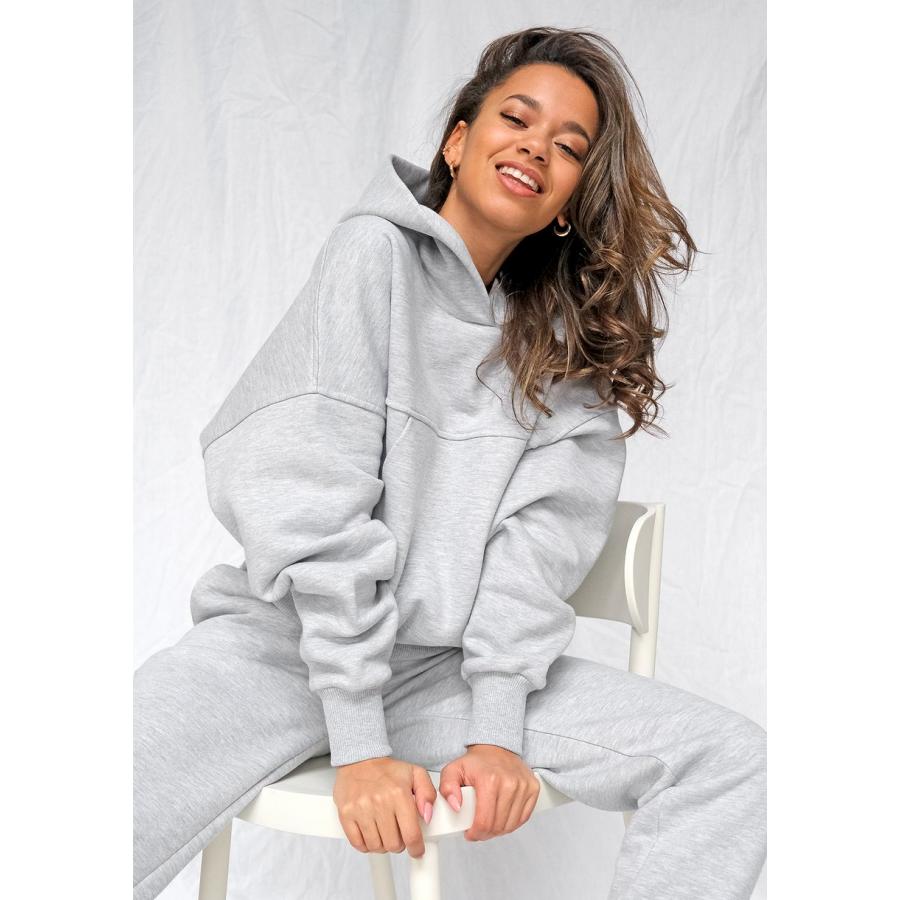 Dámská mikina s kapucí, vyrobená z příjemně měkké látky. Model velmi volného krátkého střihu s praktickou klokaní kapsou.