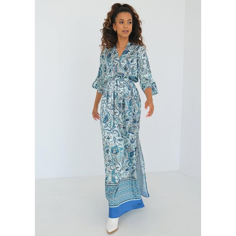 Vzorované maxi šaty MOSQUITO modré barvy, vyrobené z vysoce kvalitního materiálu a navržené podle nejnovějších módních trendů.