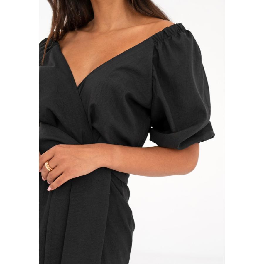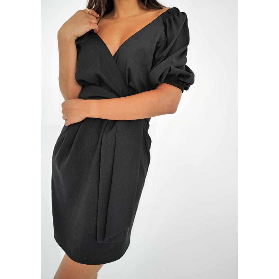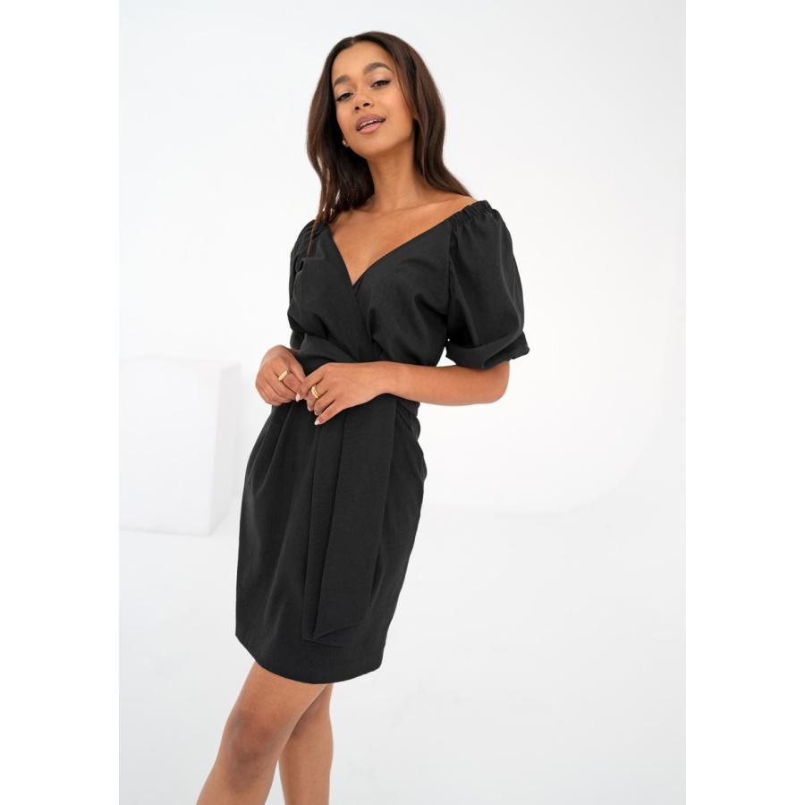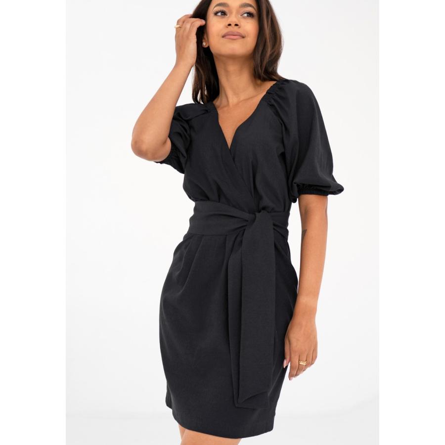 Černé minišaty s obálkovým výstřihem MOSQUITO, vyrobeny z vysoce kvalitního materiálu a navrženy podle nejnovějších módních trendů.