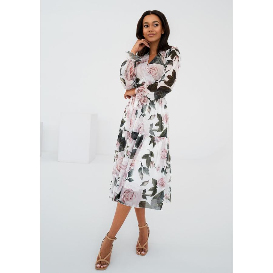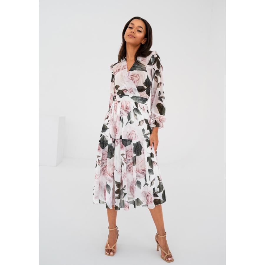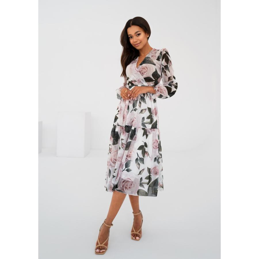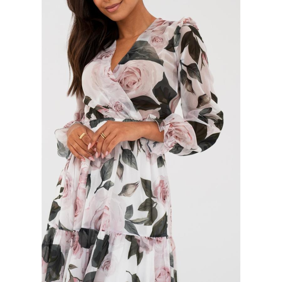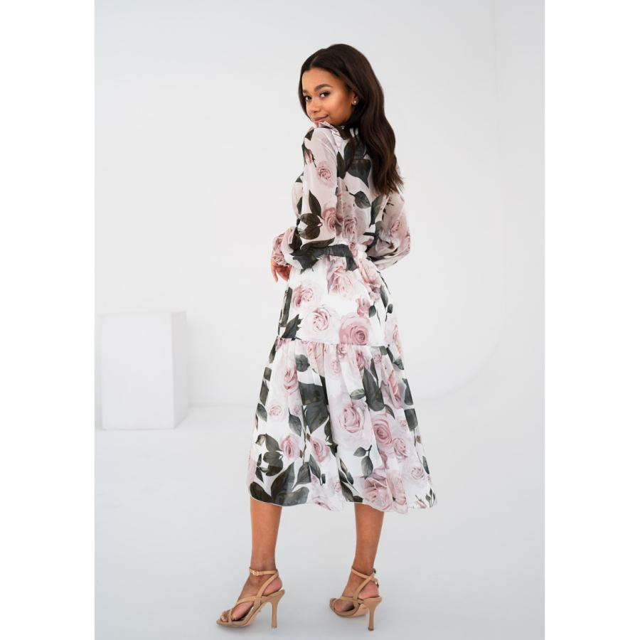 Šifonové midi šaty romanticky doplněné vzorem růží.