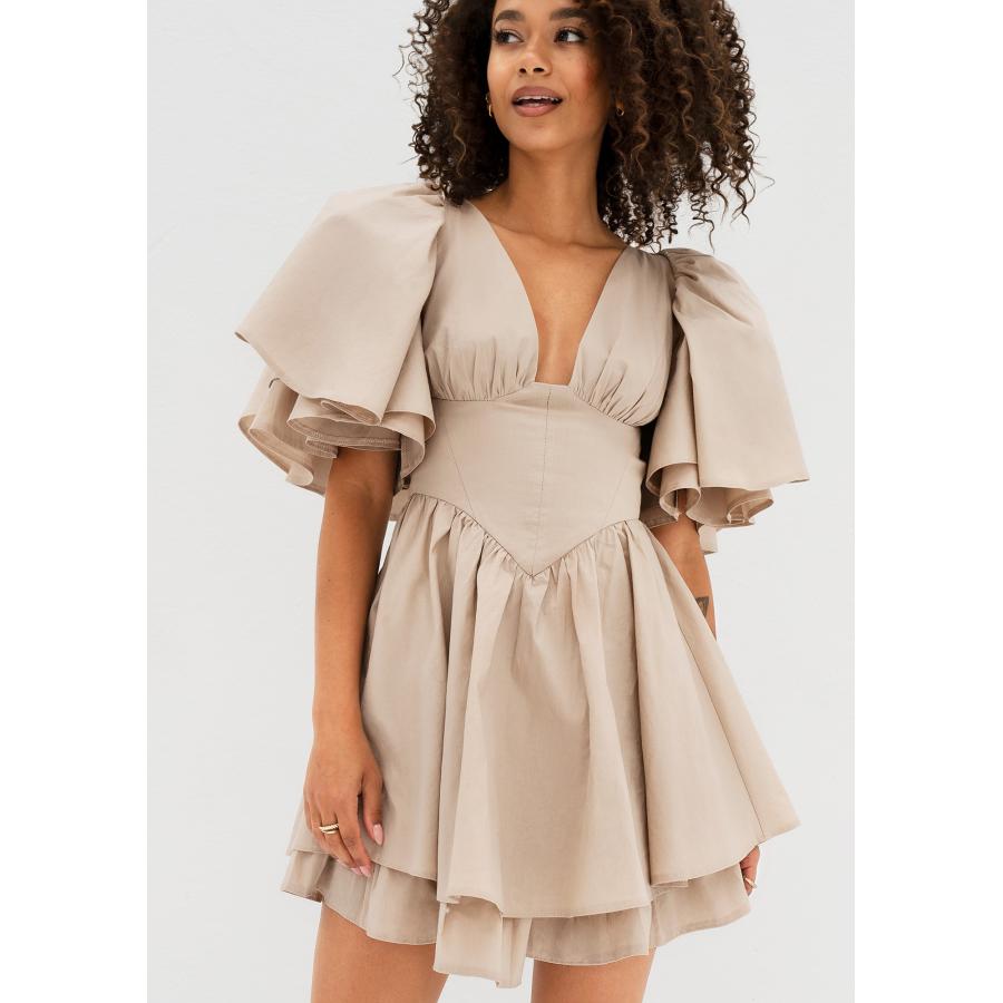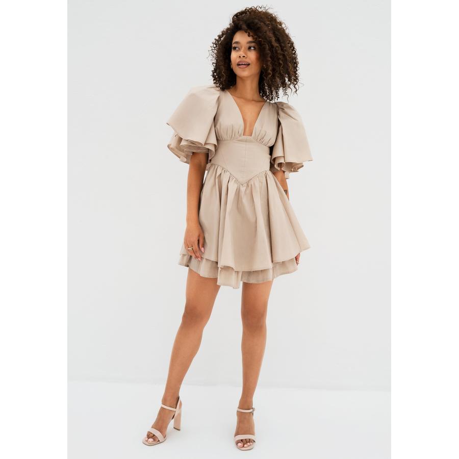Béžové korzetové šaty MOSQUITO, vyrobeny z vysoce kvalitního materiálu a navrženy podle nejnovějších módních trendů.
