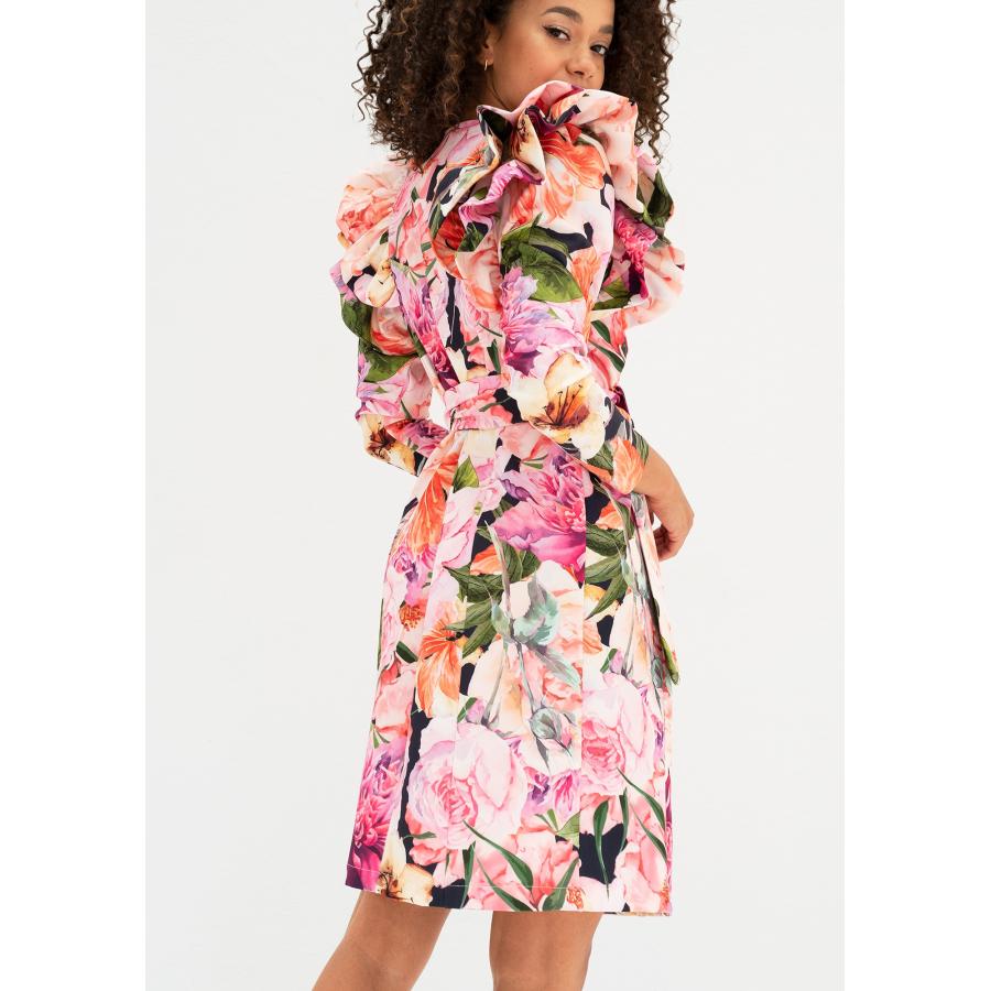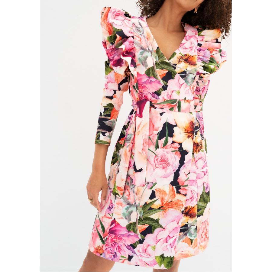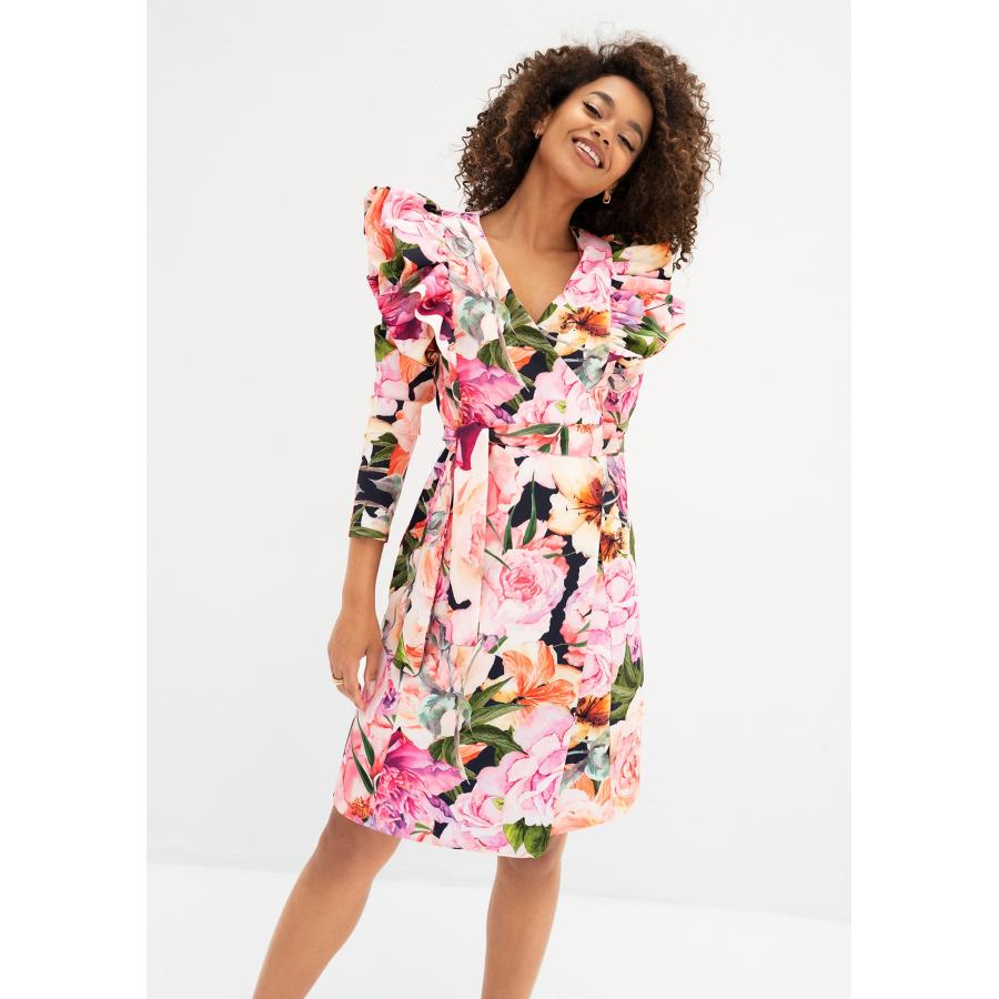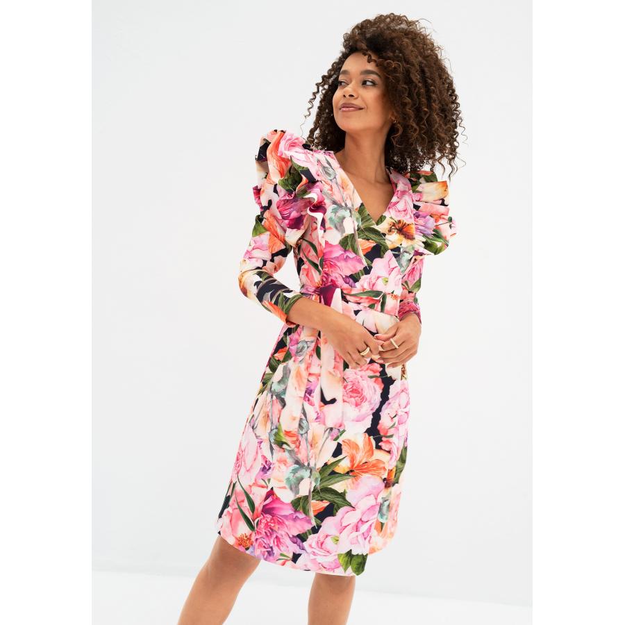 Květinové zavinovací šaty MOSQUITO s volány, vyrobené z vysoce kvalitního materiálu a navržené podle nejnovějších módních trendů.
