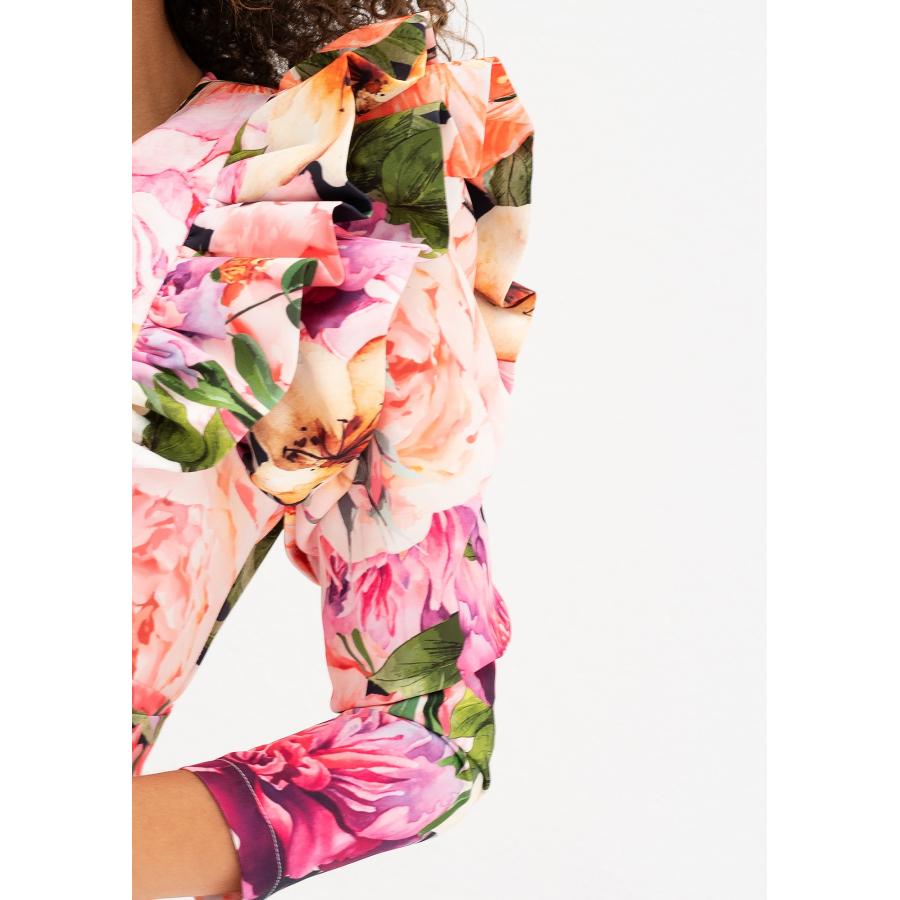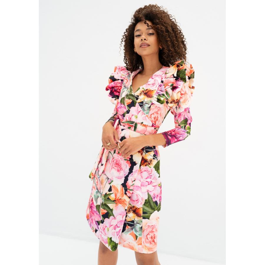 Květinové obálkové šaty v elegantním a slušivém stylu pro každou příležitost. Nádherně zdobené volány na ramenou.