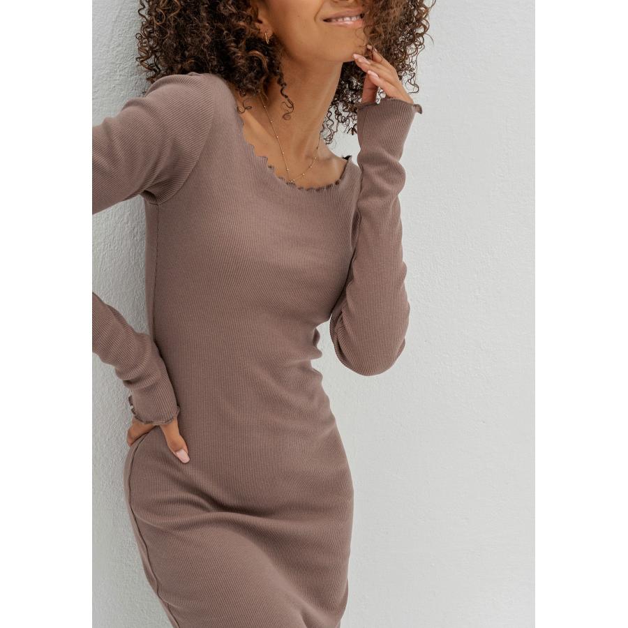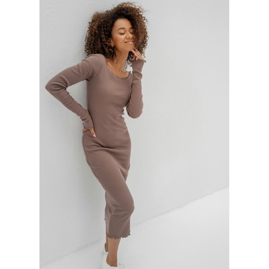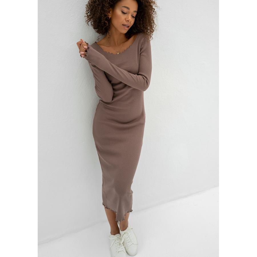 Hnědé žebrované midi šaty MOSQUITO pro dámy, vyrobené z vysoce kvalitního materiálu a navržené podle nejnovějších módních trendů.