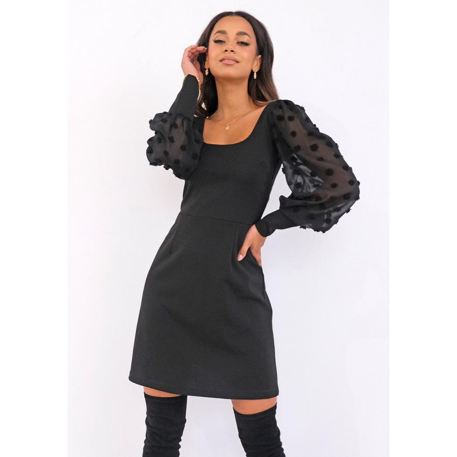 Černé šaty MOSQUITO s šifonovými rukávy, vyrobené z vysoce kvalitního materiálu a navržené podle nejnovějších módních trendů.