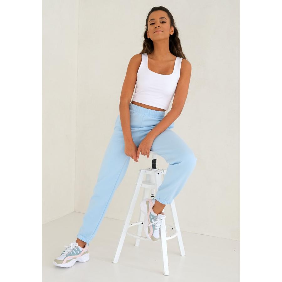 Pohodlné tepláky z příjemně měkkého a bavlněného úpletu s drobným přídavkem polyesteru. jejich intenzivní světle modrá barva vás odliší od davu.