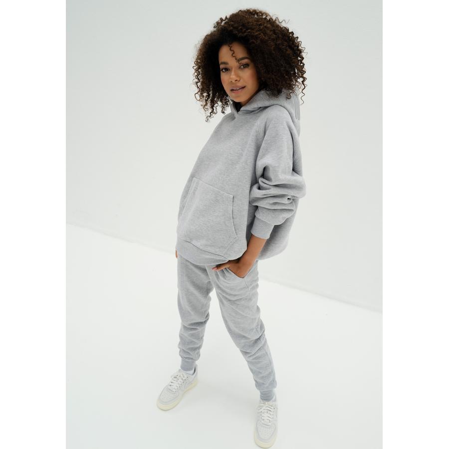 Dámské tepláky prémiové kvality z úpletu s jemným efektem "broskvové kůže". Model v krásném šedém odstínu.
