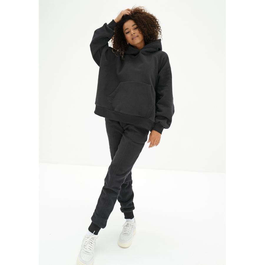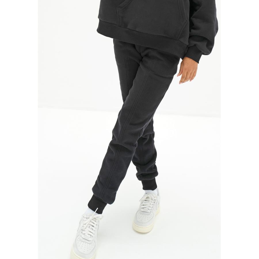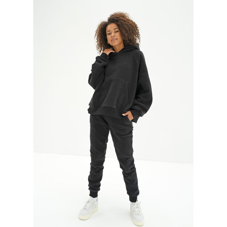 Dámské tepláky prémiové kvality z úpletu s jemným efektem "broskvové kůže". Model v krásném černém odstínu.