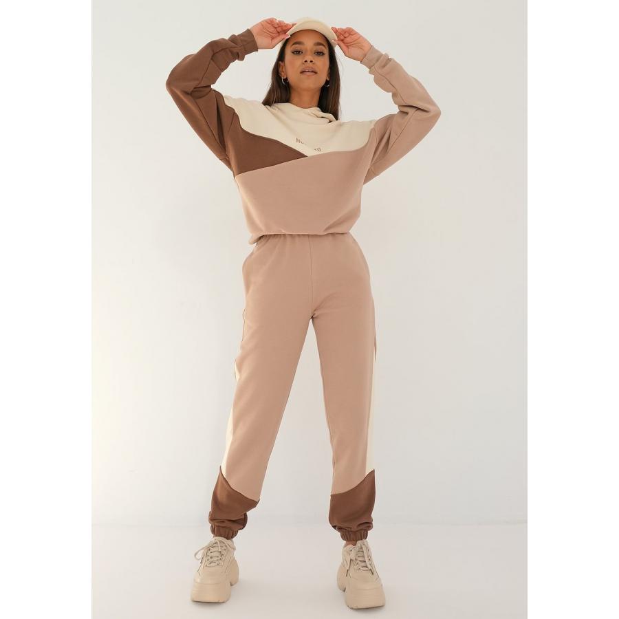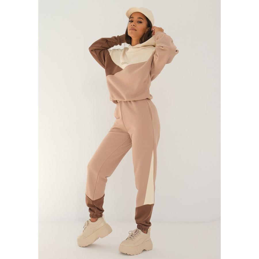 Tepláky pohodlného volného střihu s kapsami. Jsou to tepláky s geometrickým uspořádáním béžové, hnědé a vanilkové, pro milovnice zajímavých a nápaditých vzorů.