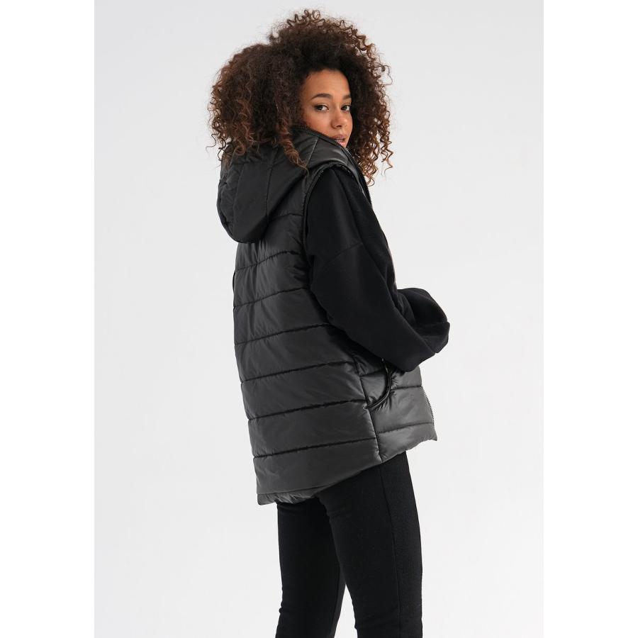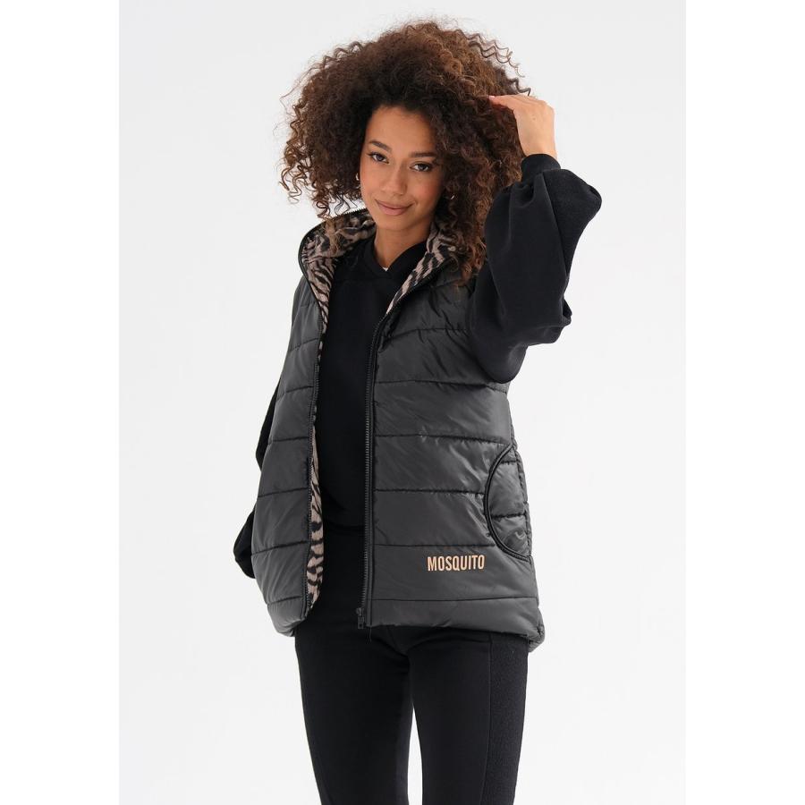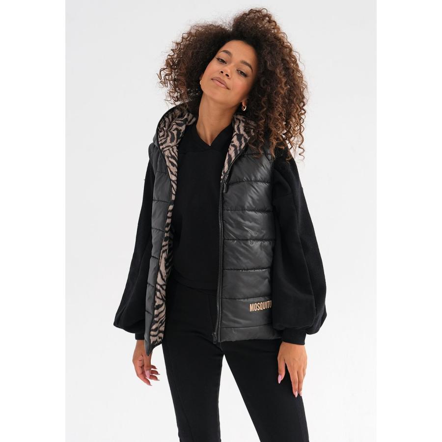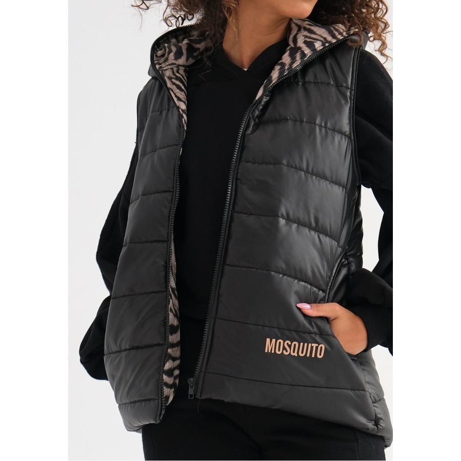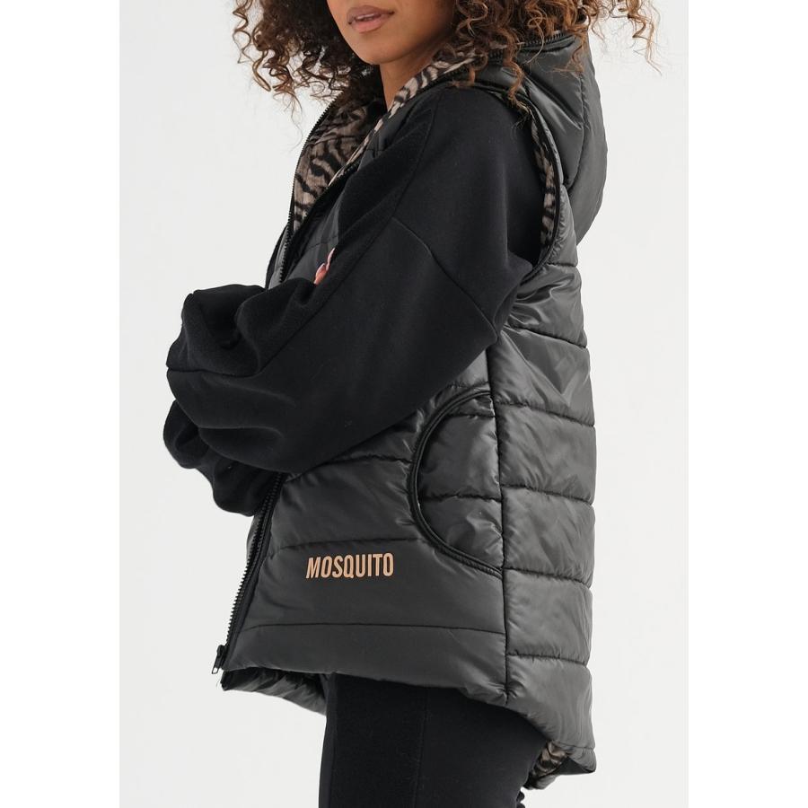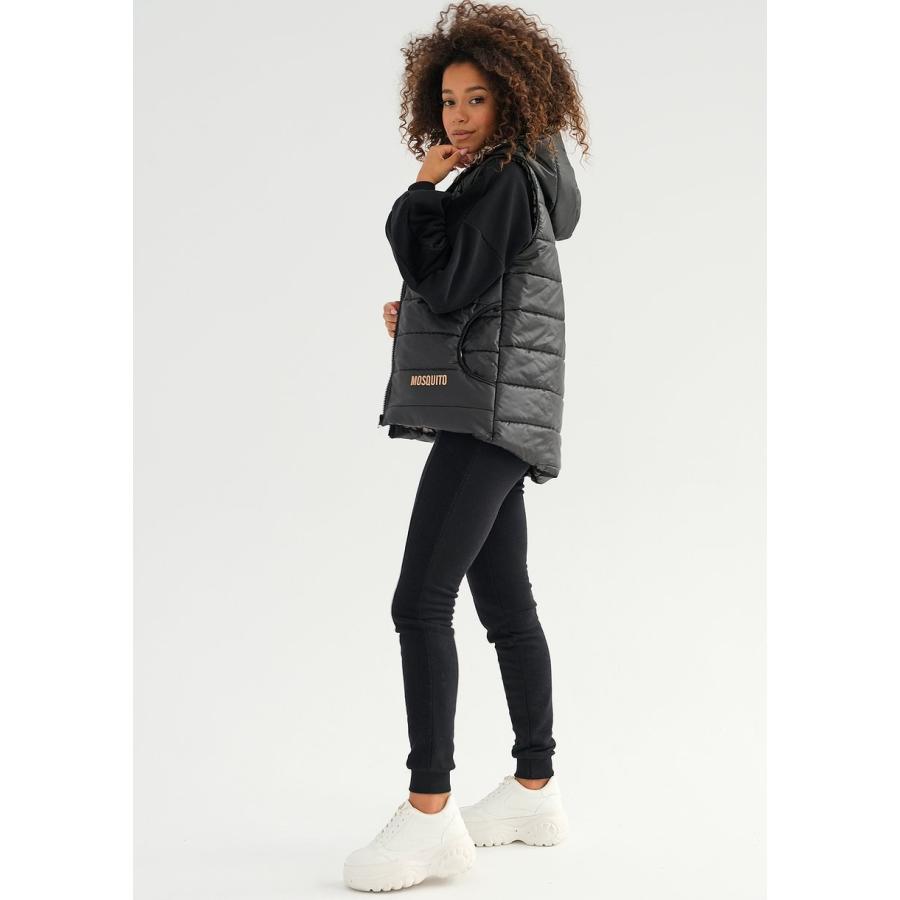 Černá vesta MOSQUITO s kapucí, vyrobená z vysoce kvalitního materiálu a navržená podle nejnovějších módních trendů.