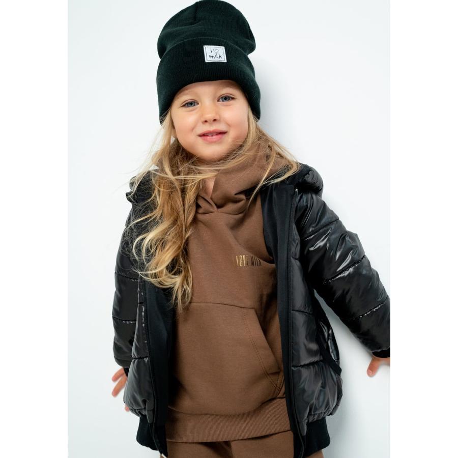 Černá prošívaná bunda s ušima I LOVE MILK, vyrobena z vysoce kvalitního materiálu a navržena podle nejnovějších módních trendů.