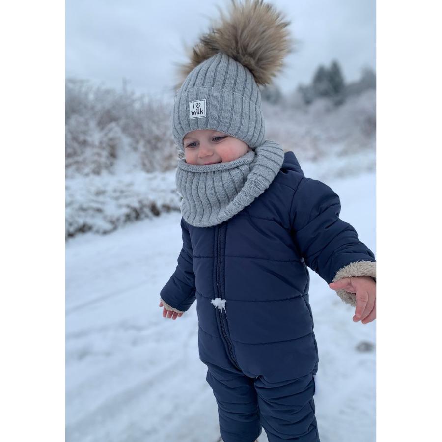 Dětský zimní komín I LOVE MILK v šedé barvě, vyrobený z vysoce kvalitního materiálu a navržený podle nejnovějších módních trendů.