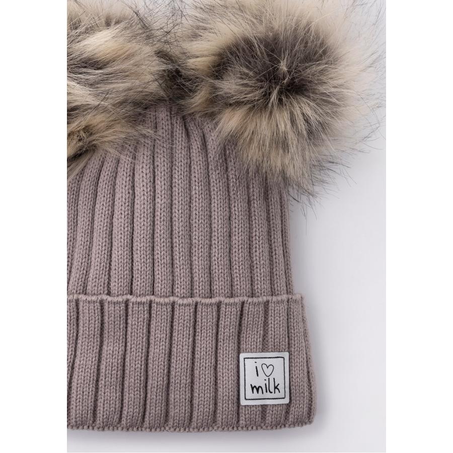 Zimní světle hnědá čepice I LOVE MILK s bambulkami, vyrobena z vysoce kvalitního materiálu a navržena podle nejnovějších módních trendů.
