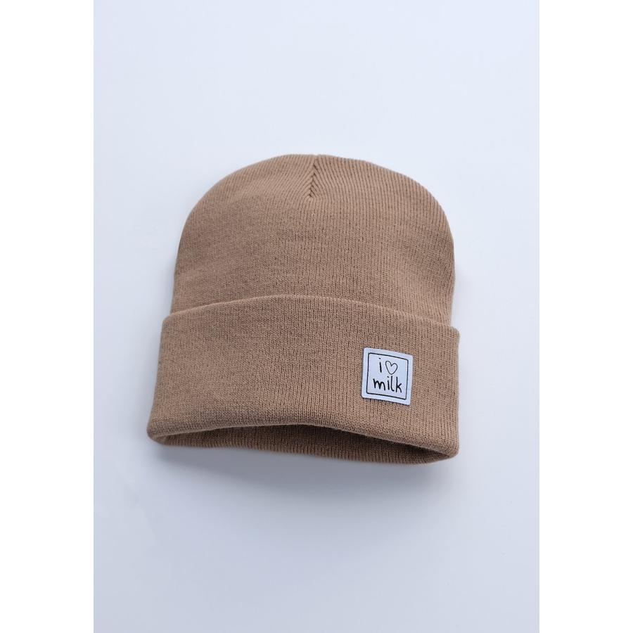 Dětská čepice I LOVE MILK v kávovém odstínu, vyrobena z vysoce kvalitního materiálu a navržena podle nejnovějších módních trendů.