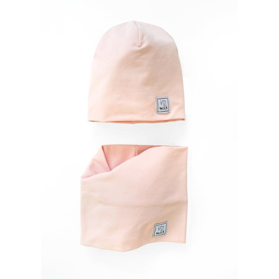 Pudrový komplet čepice a komína I LOVE MILK, vyrobený z vysoko kvalitného materiálu a navrhnutý podľa najnovších módnych trendov.