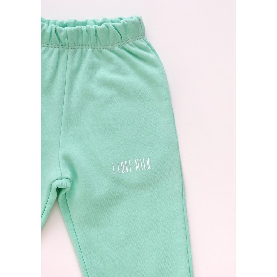 Sportovní tepláky I LOVE MILK v mátové barvě, vyrobené z vysoce kvalitního materiálu a navržení podle nejnovějších módních trendů.