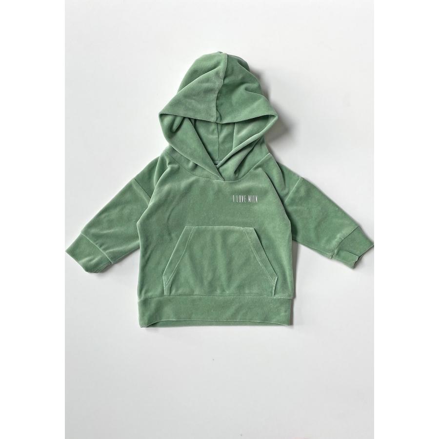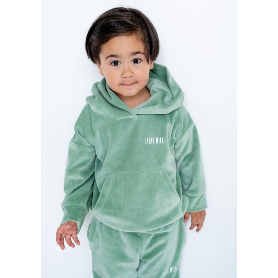 Mikina s kapucí I LOVE MILK mátové barvy, vyrobena z vysoce kvalitního materiálu a navržena podle nejnovějších módních trendů.