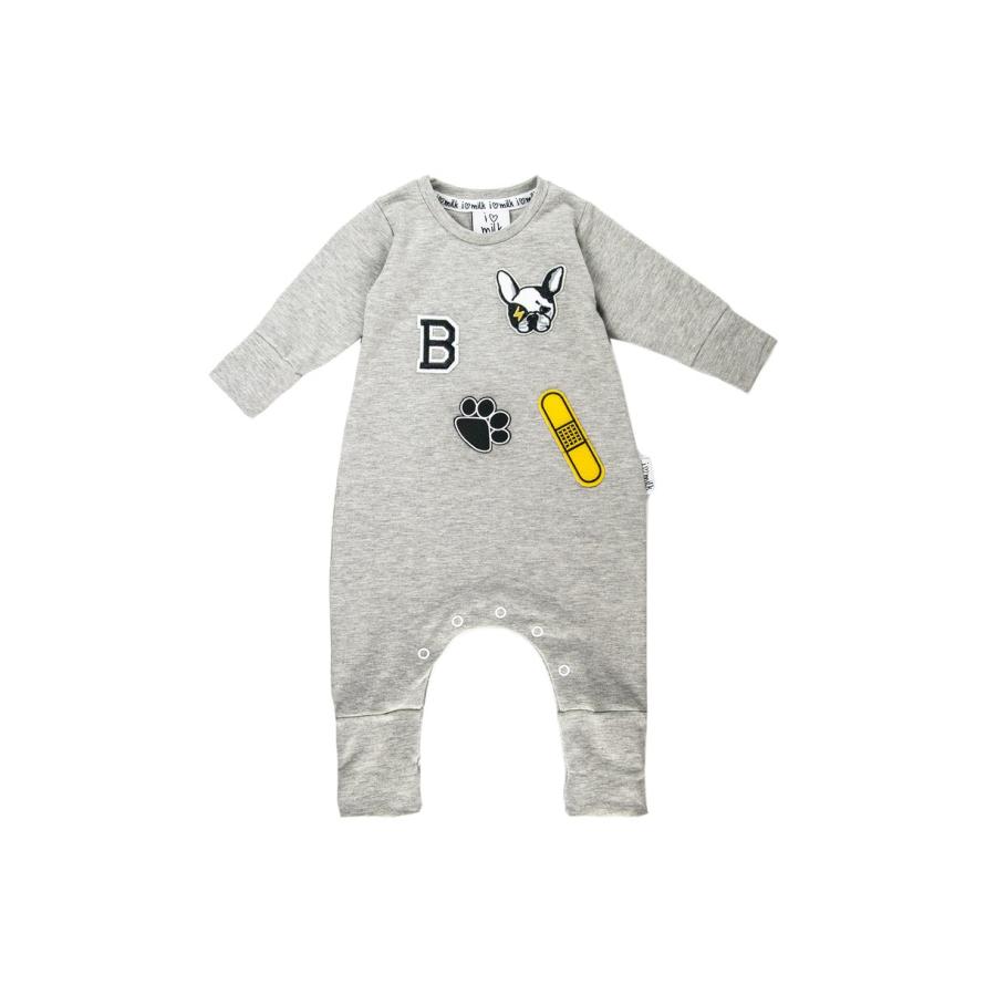 Bavlněný overal I LOVE MILK s nášivkami, vyrobený z vysoce kvalitního materiálu a navržený podle nejnovějších módních trendů.