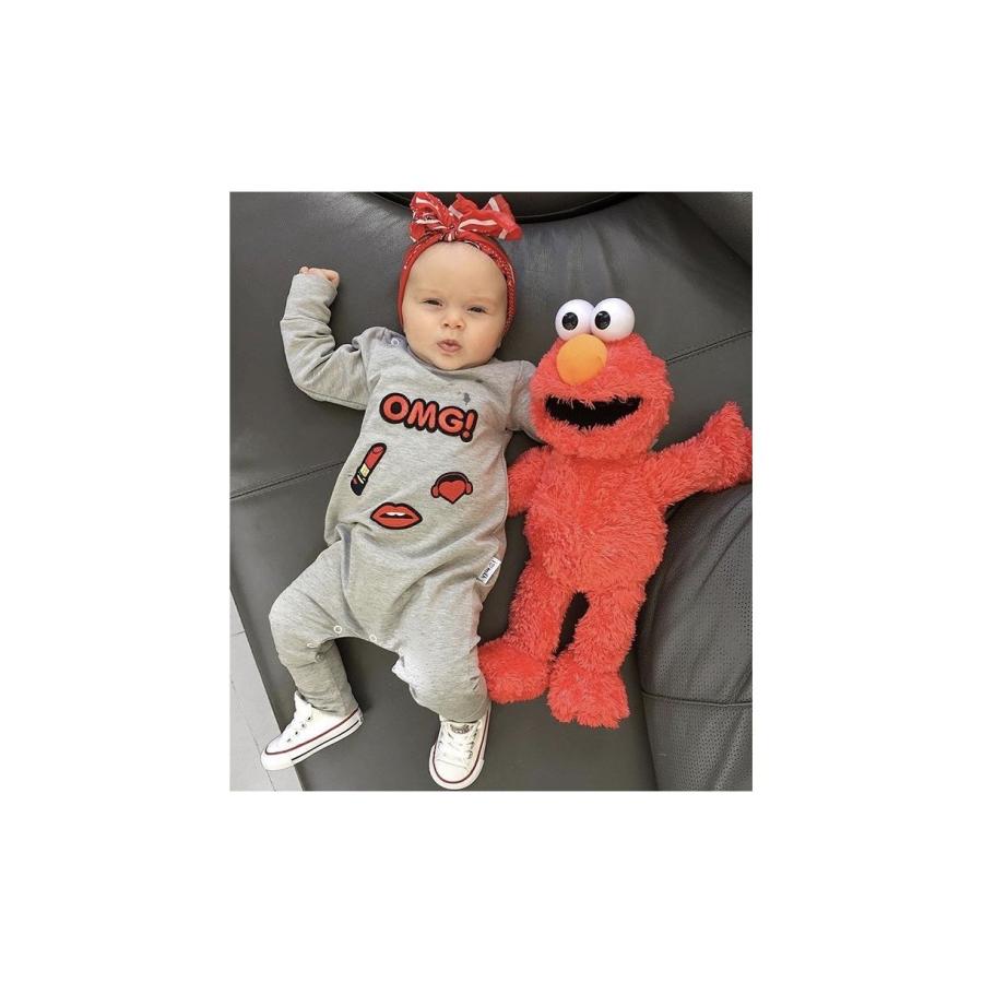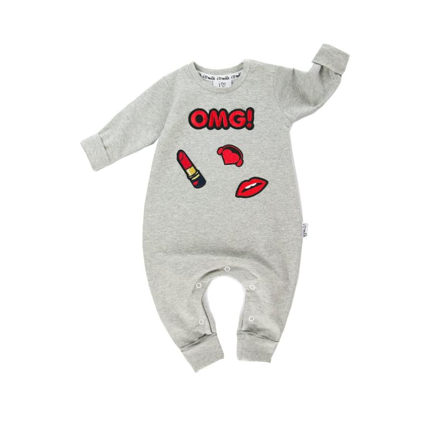 Bavlněný I LOVE MILK overal s nášivkou OMG, vyrobený z vysoce kvalitního materiálu a navržený podle nejnovějších módních trendů.