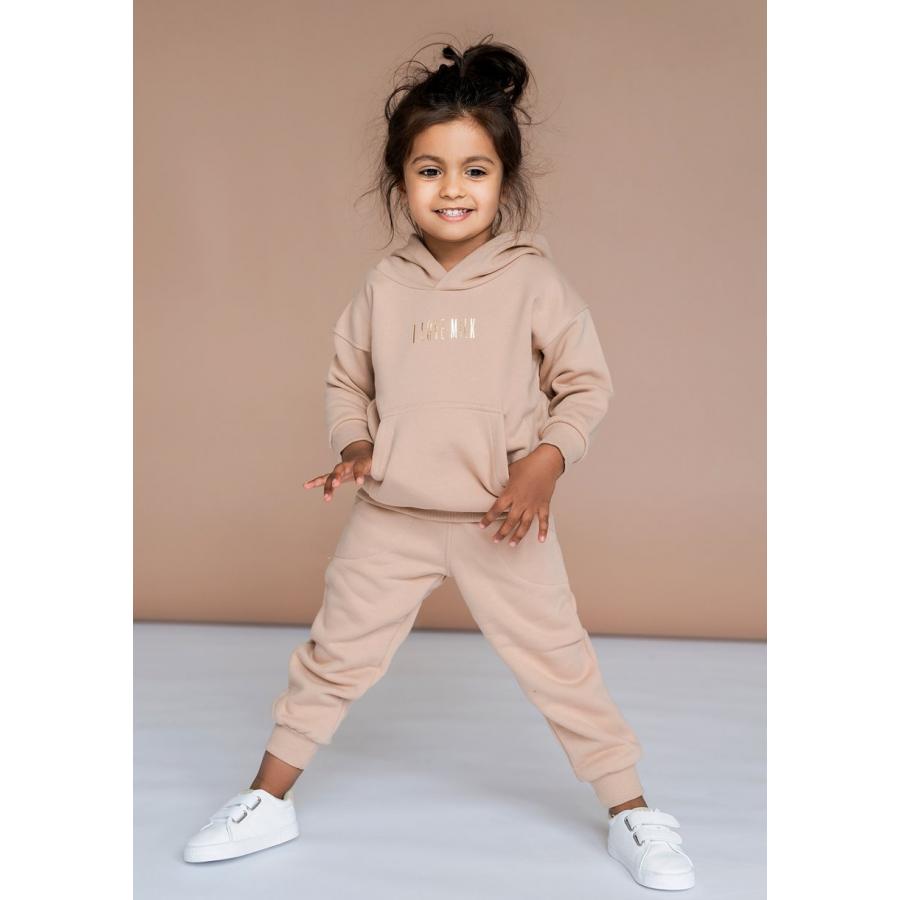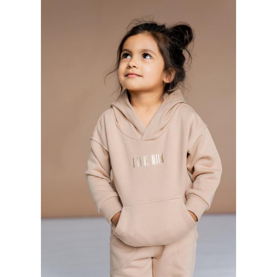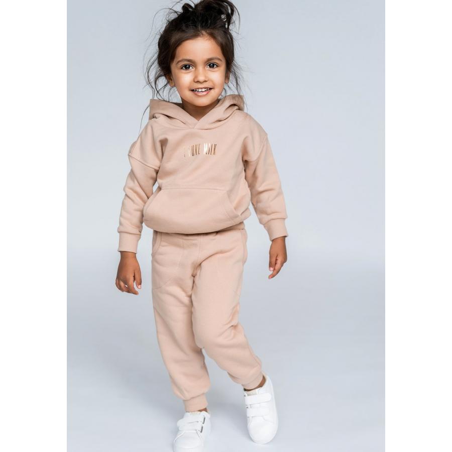 Dětská sportovní souprava I LOVE MILK béžové barvy, vyrobena z vysoce kvalitního materiálu a navržena podle nejnovějších módních trendů.
