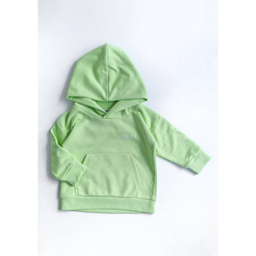 Dětská souprava I LOVE MILK v limetkové barvě, vyrobena z vysoce kvalitního materiálu a navržena podle nejnovějších módních trendů.