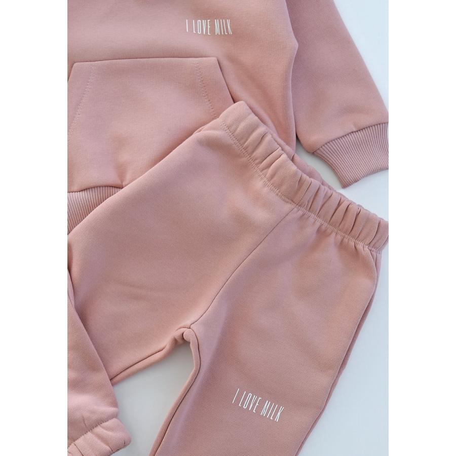 Růžová souprava s logem I LOVE MILK, vyrobena z vysoce kvalitního materiálu a navržena podle nejnovějších módních trendů.