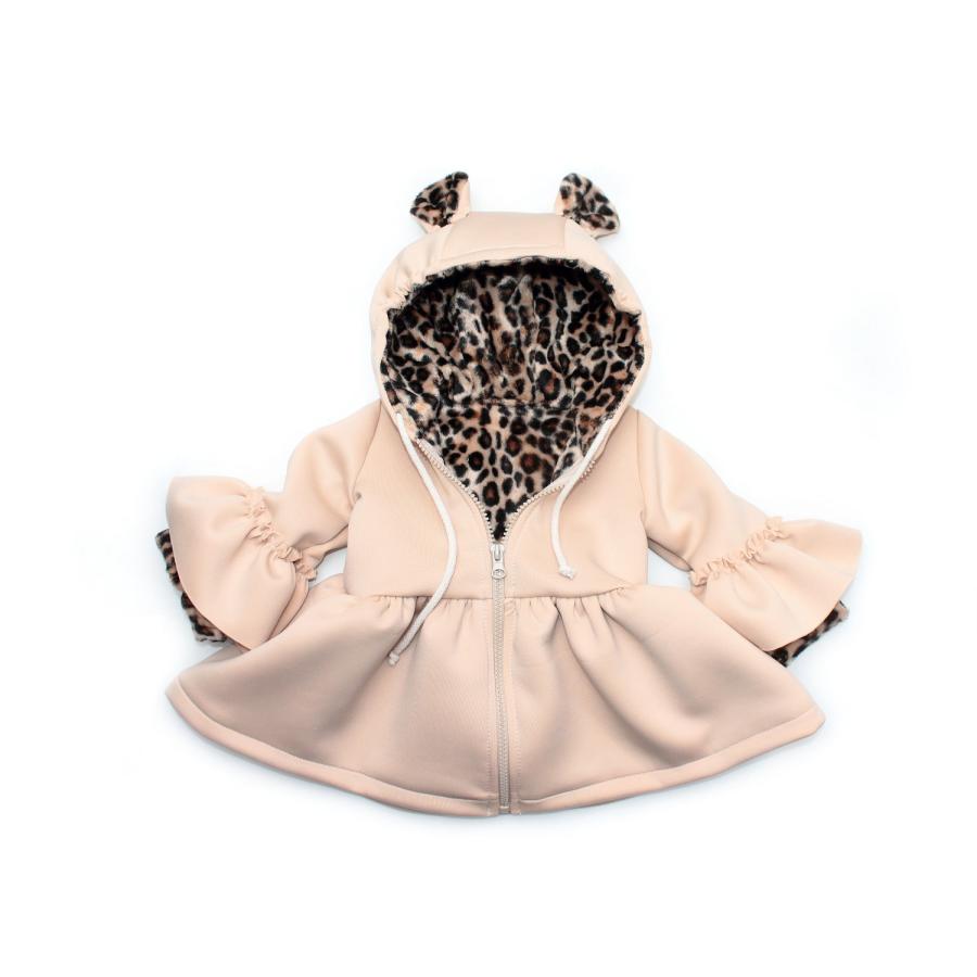 Dívčí kabátek s oušky v hnědé barvě, vyrobený z...