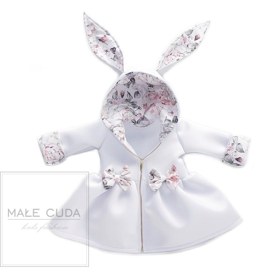 Neoprenový kabátek s květinovým potiskem v bíle barvě, vyrobený z vysoce kvalitního materiálu a navržený podle nejnovějších módních trendů.