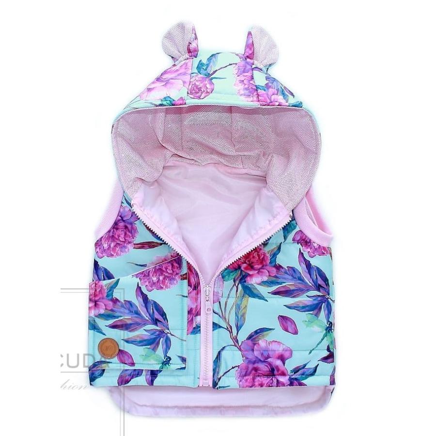 Modrá vesta s potiskem květin pro dívky, vyrobená z vysoko kvalitného materiálu a navrhnutá podľa najnovších módnych trendov.