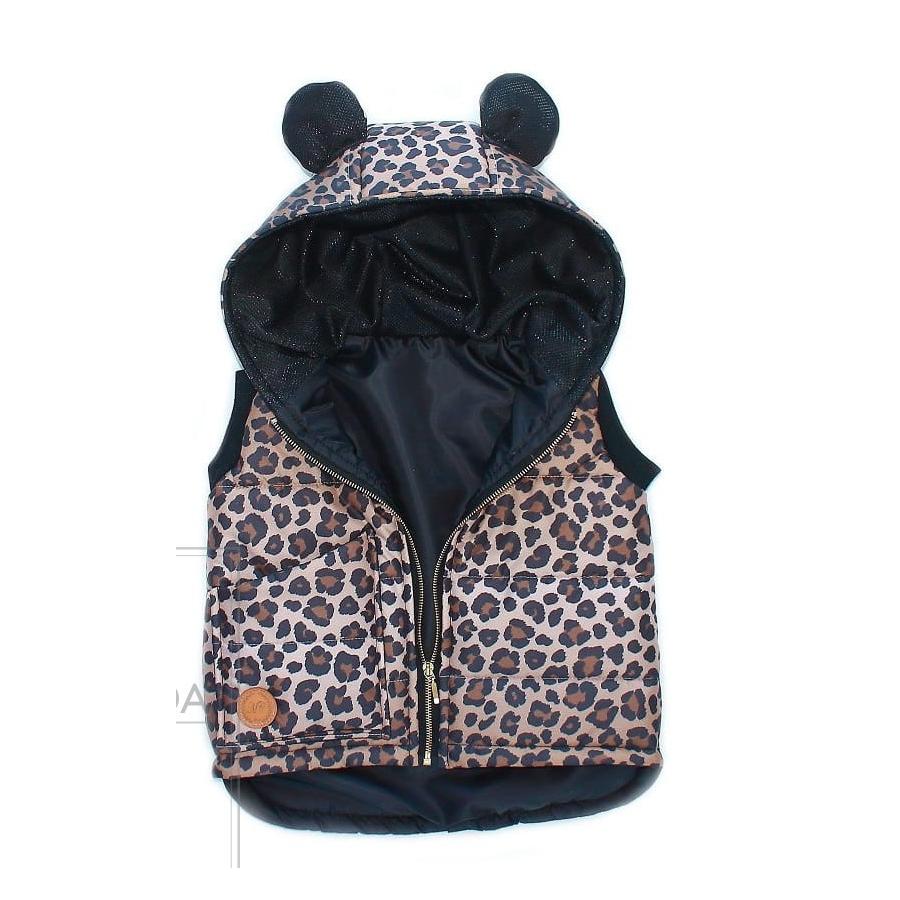 Leopardí vesta s kapucí a oušky, vyrobená z vysoko kvalitného materiálu a navrhnutá podľa najnovších módnych trendov.