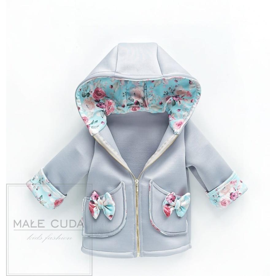 Šedá neoprenová bundička s kapsami, vyrobená z vysoko kvalitného materiálu a navrhnutá podľa najnovších módnych trendov.