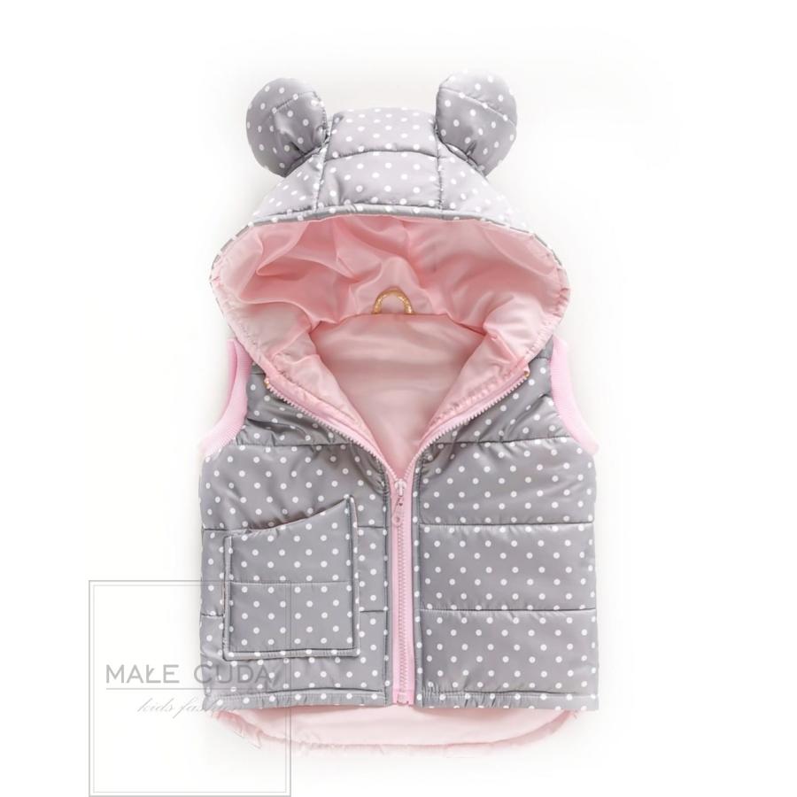 Tečkovaná šedá vesta s oušky, vyrobená z vysoko kvalitného materiálu a navrhnutá podľa najnovších módnych trendov.