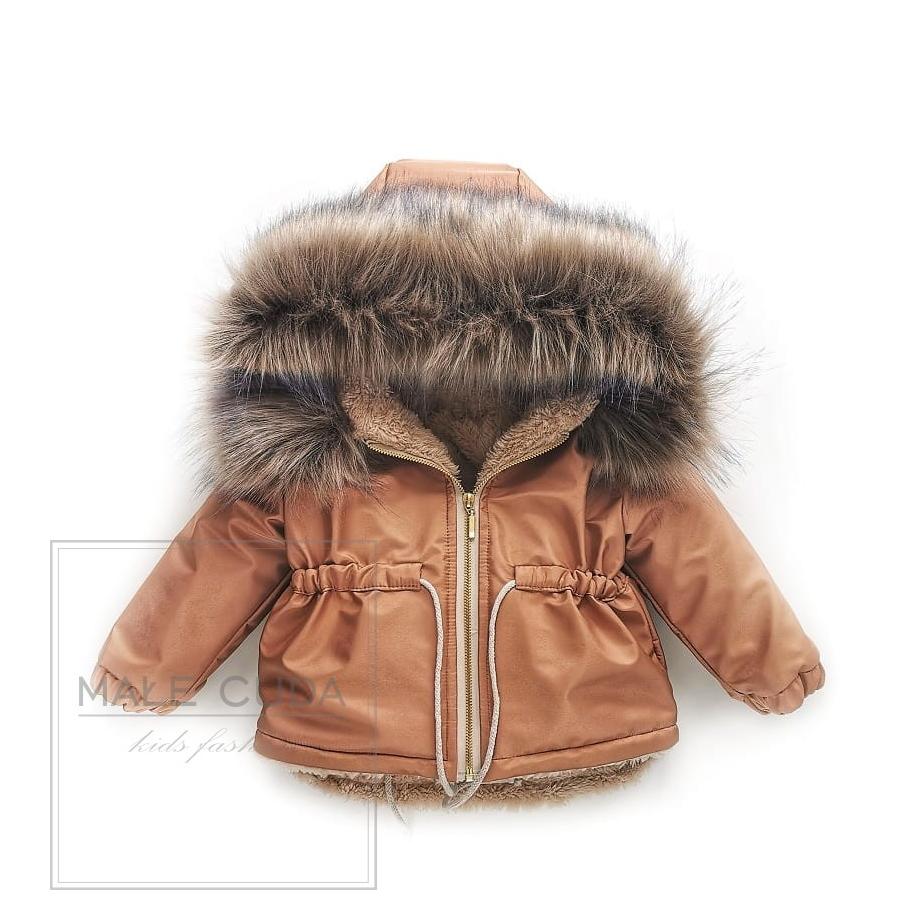 Dětská bunda v parkovém stylu, která je již několik sezón velice módní. Je ušita z látky odolné proti větru a dešti, bude se skvěle hodit na blížící se podzim, ale také časnou či teplou zimu a jaro. Parka je podšitá měkkou a pěknou kožešinou. Mírně prodloužená záda chrání záda před větrem a chladem. Kapuce je lemována ekologickou kožešinou velmi vysoké kvality. (kožešina přišitá na kapuci) V pase má nastavitelnou šňůrku. Lze prát v pračce na 30 stupňů, odstřeďování 1200, po vyjmutí bundy z pračky ji pořádně vytřeste, poté si kožešina zachová krásný vzhled po dlouhou dobu.