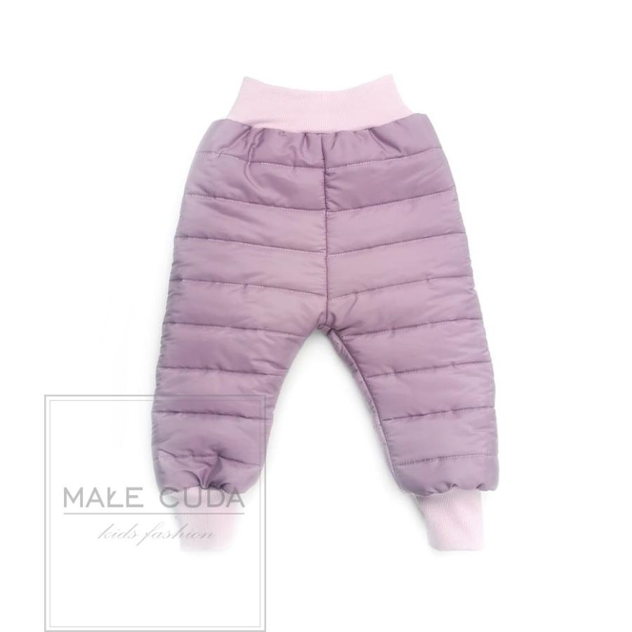 Prošívané teplé kalhoty ve světle fialové barvě, vyrobené z vysoce kvalitního materiálu a navrženy podle nejnovějších módních trendů.