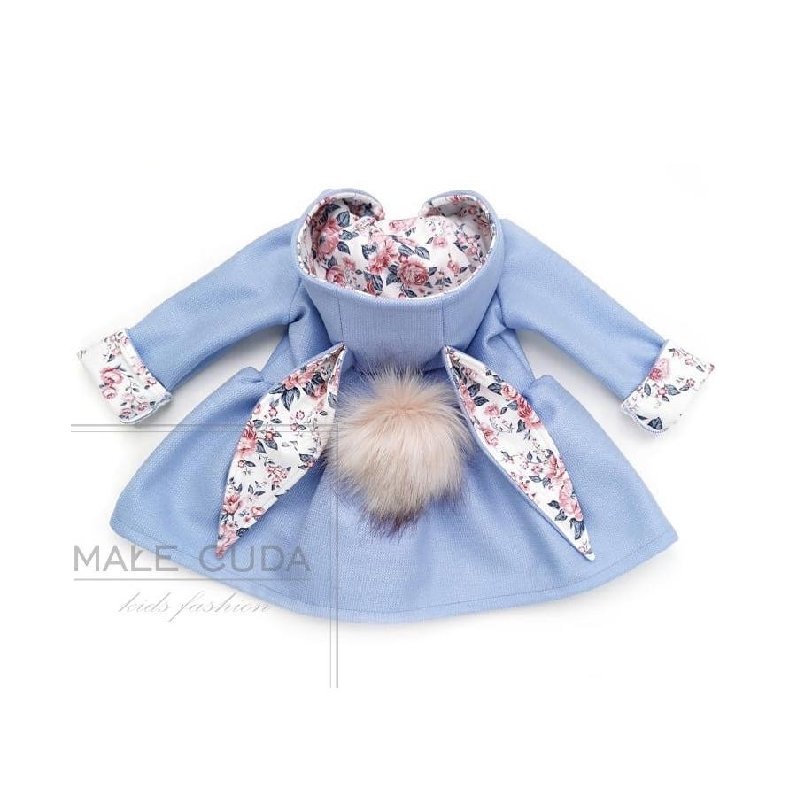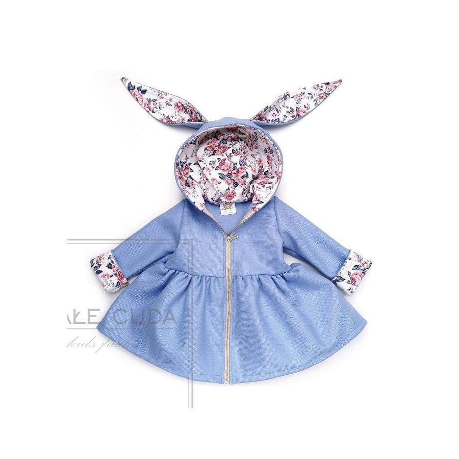 Dívčí kabátek s oušky v modré barvě, vyrobený z vysoko kvalitného materiálu a navrhnutý podľa najnovších módnych trendov.