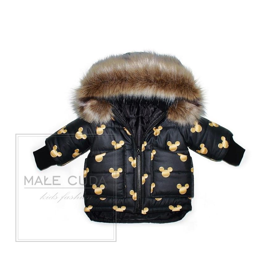 Zimní bundička černé barvy Mickey Mouse, vyrobená z vysoko kvalitného materiálu a navrhnutá podľa najnovších módnych trendov.